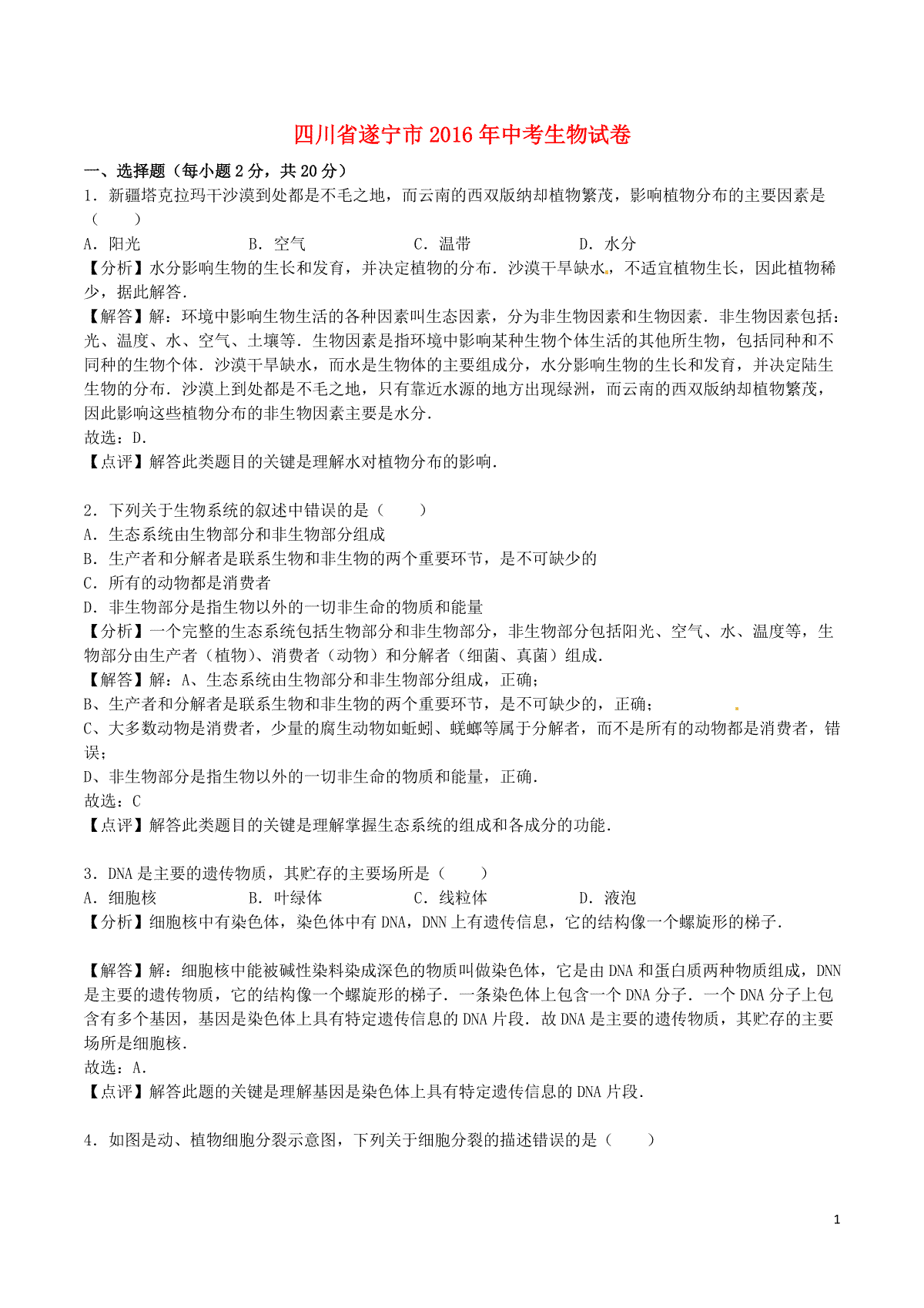 一、四川省遂宁市2016年中考生物真题试题(含解析)