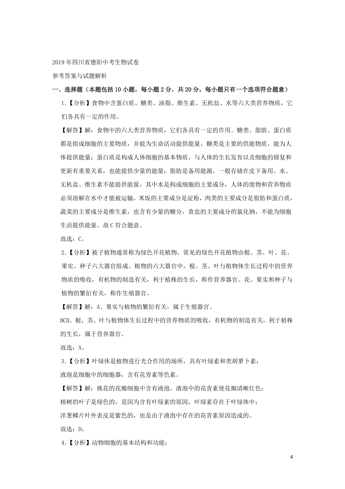 一、四川省德阳市2019年中考生物真题试题(含解析)