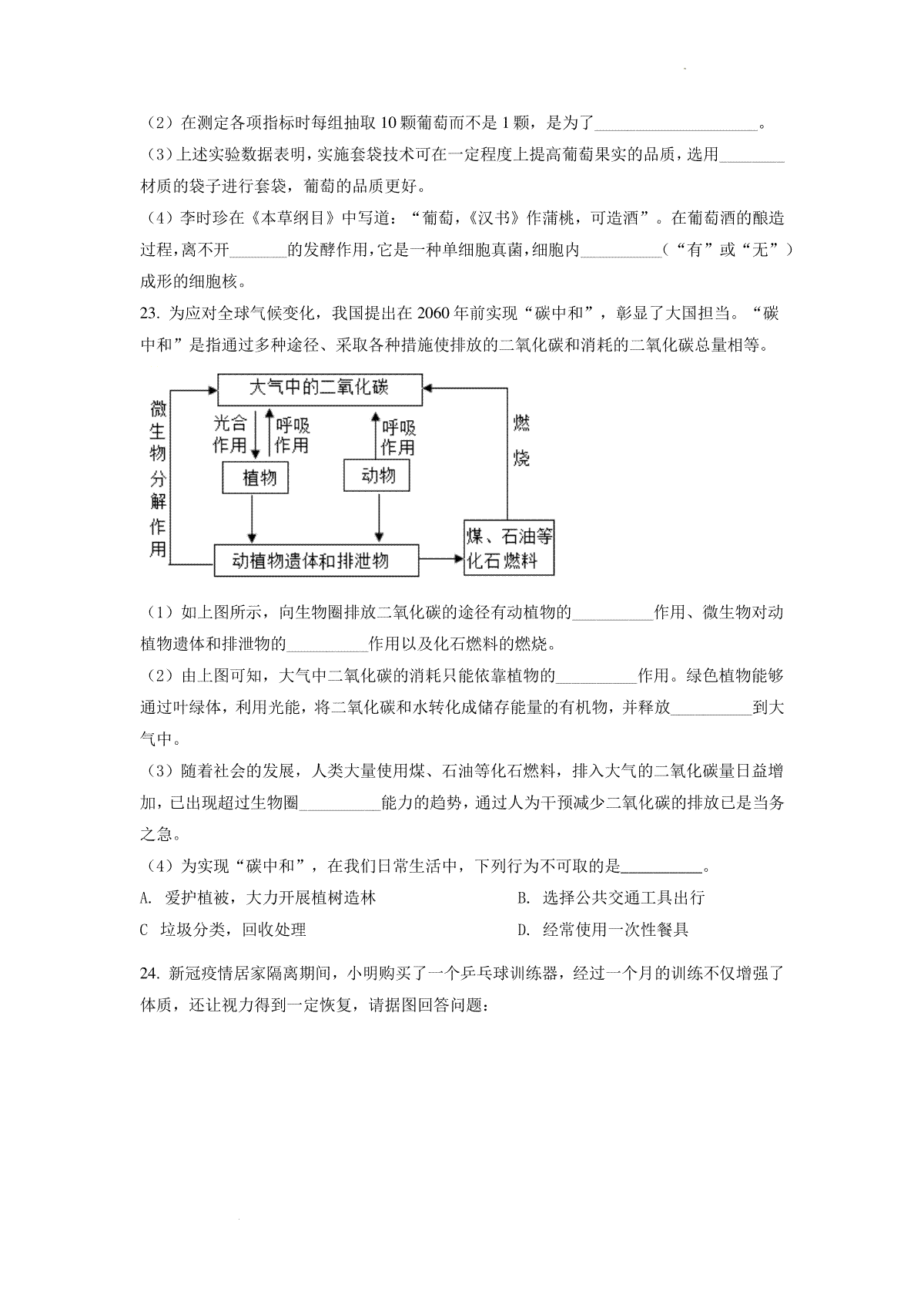 一、精品解析:2022年重庆市中考生物真题(原卷版)