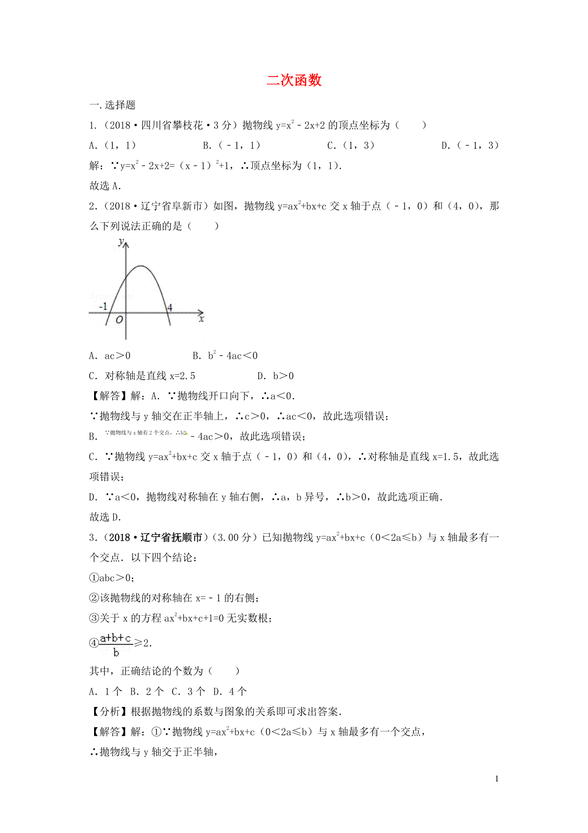 一、2018年中考数学真题分类汇编第三期专题13二次函数试题含解析201901243105