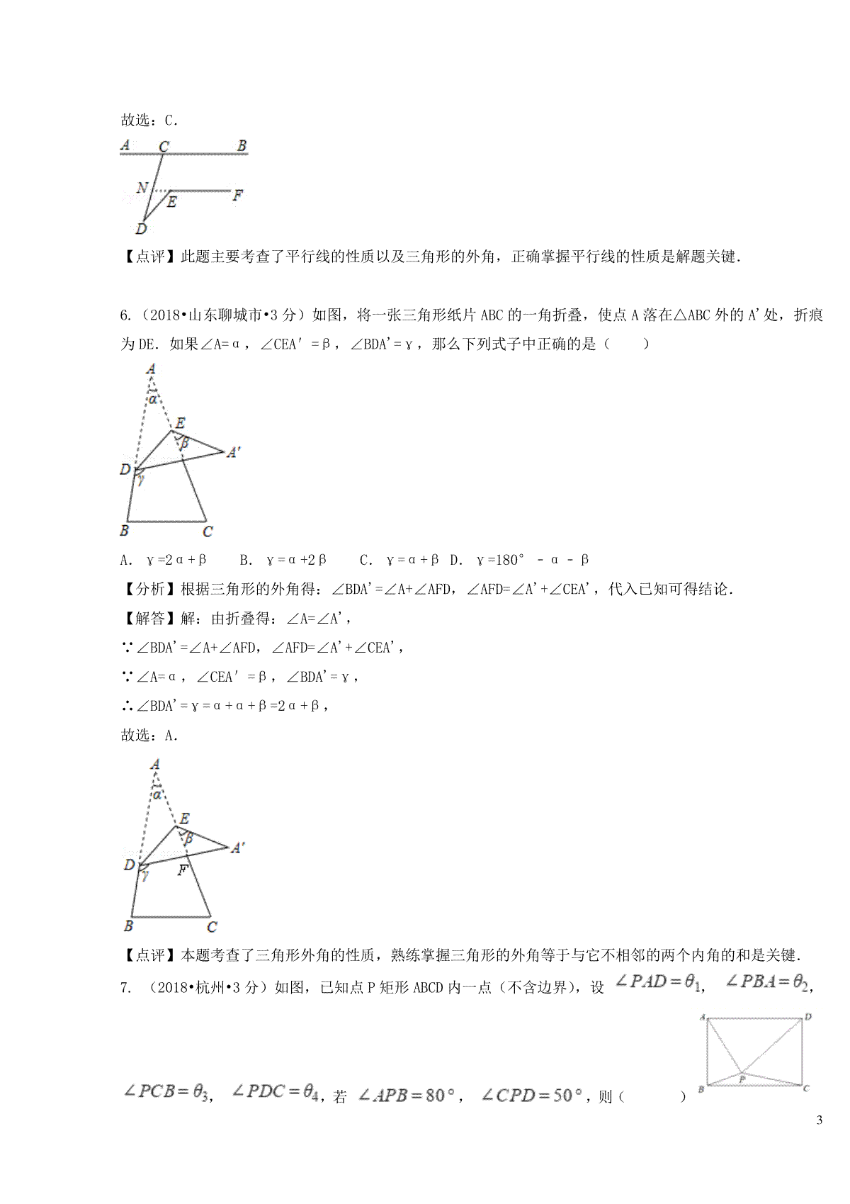 一、2018年中考数学真题分类汇编第二期专题20三角形的边与角试题含解析201901253126