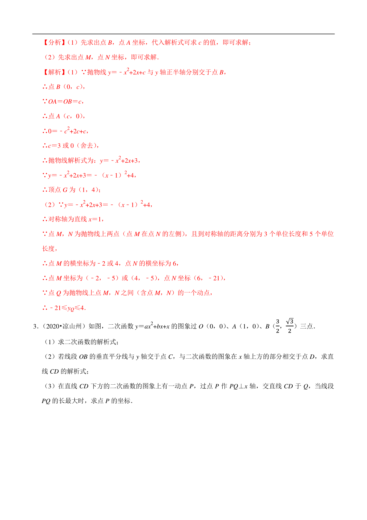 一、专题12二次函数压轴解答题(共44道)-2020年中考数学真题分项汇编(解析版)【全国通用】