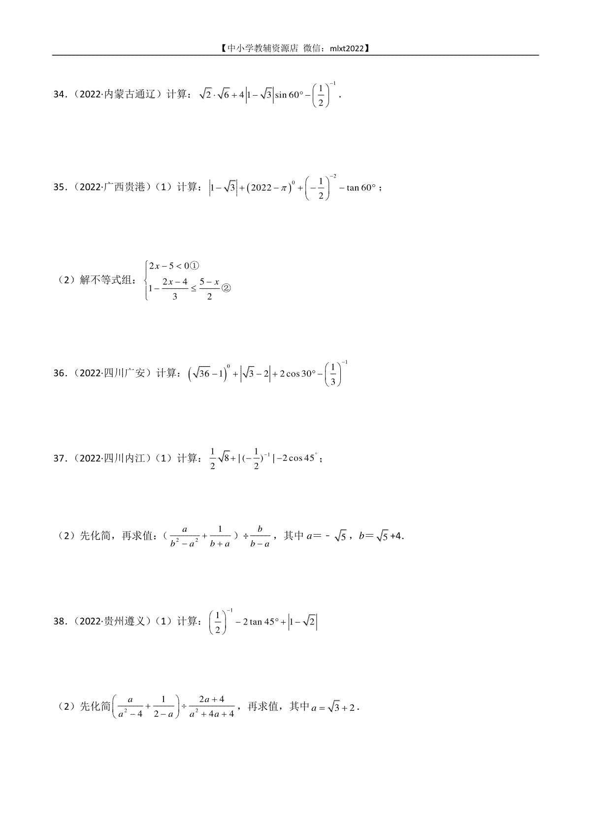 一、专题03 二次根式-2022年中考数学真题分项汇编(全国通用)(第2期)(原卷版)