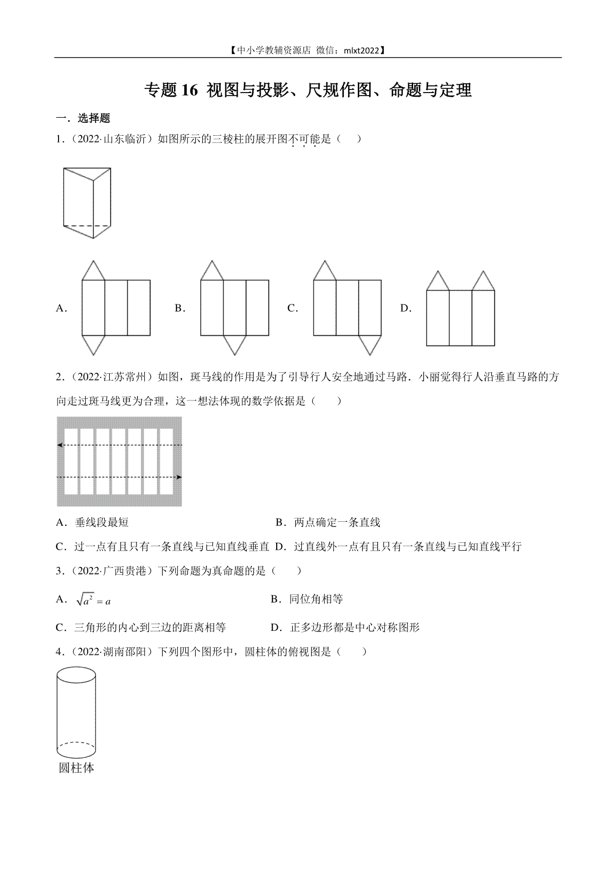 下载专题16 视图与投影、尺规作图、命题与定理-2022年中考数学真题分项汇编(全国通用)(第2期)(原PDF格式或doc