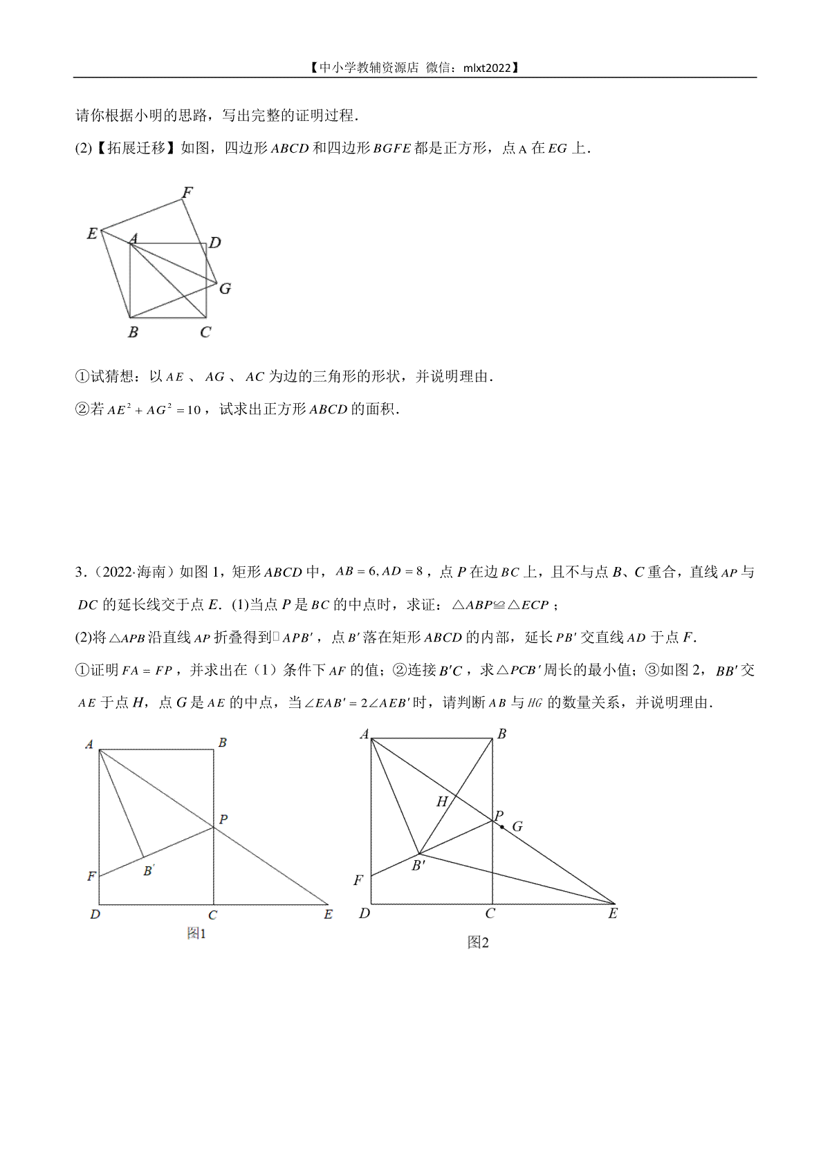一、专题21 与三角形、四边形相关的压轴题-2022年中考数学真题分项汇编(全国通用)(第2期)(原卷版