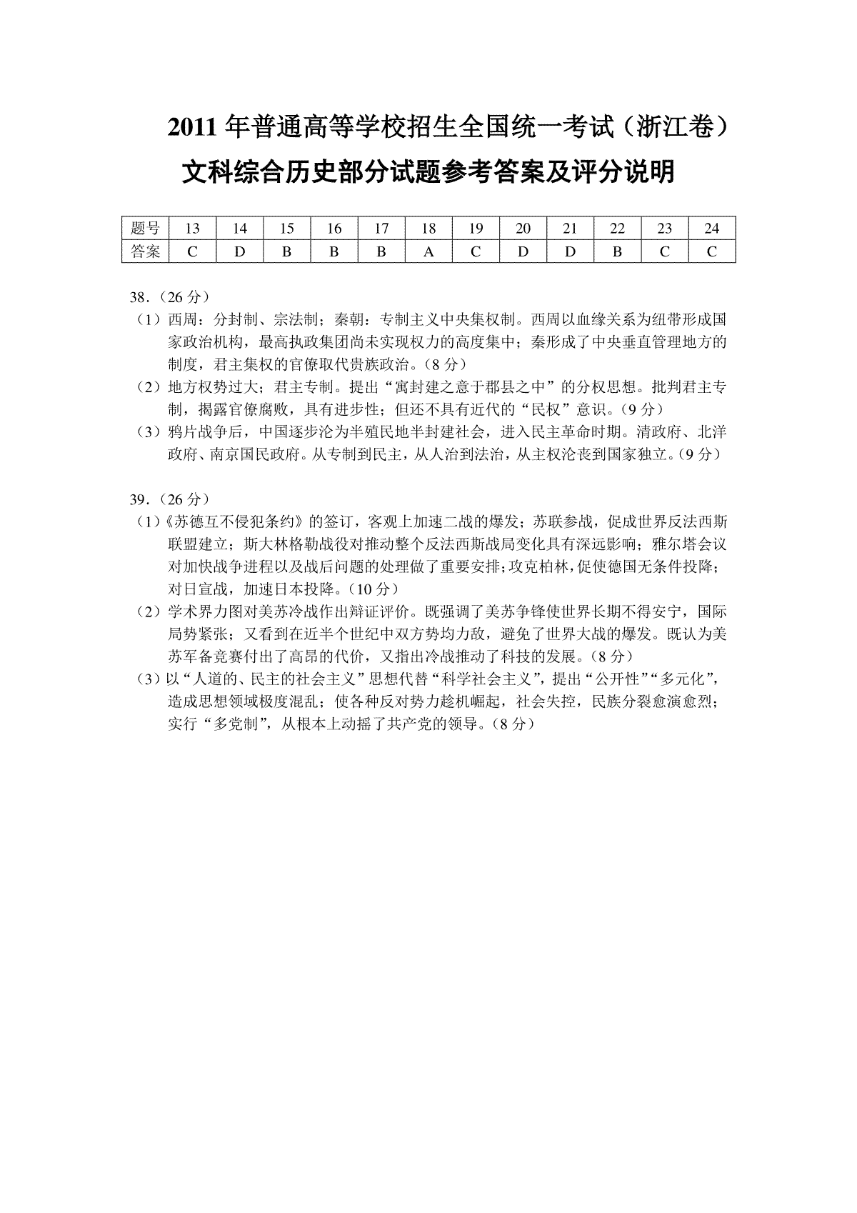 下载2011年浙江省高考历史(含解析版)PDF格式或doc