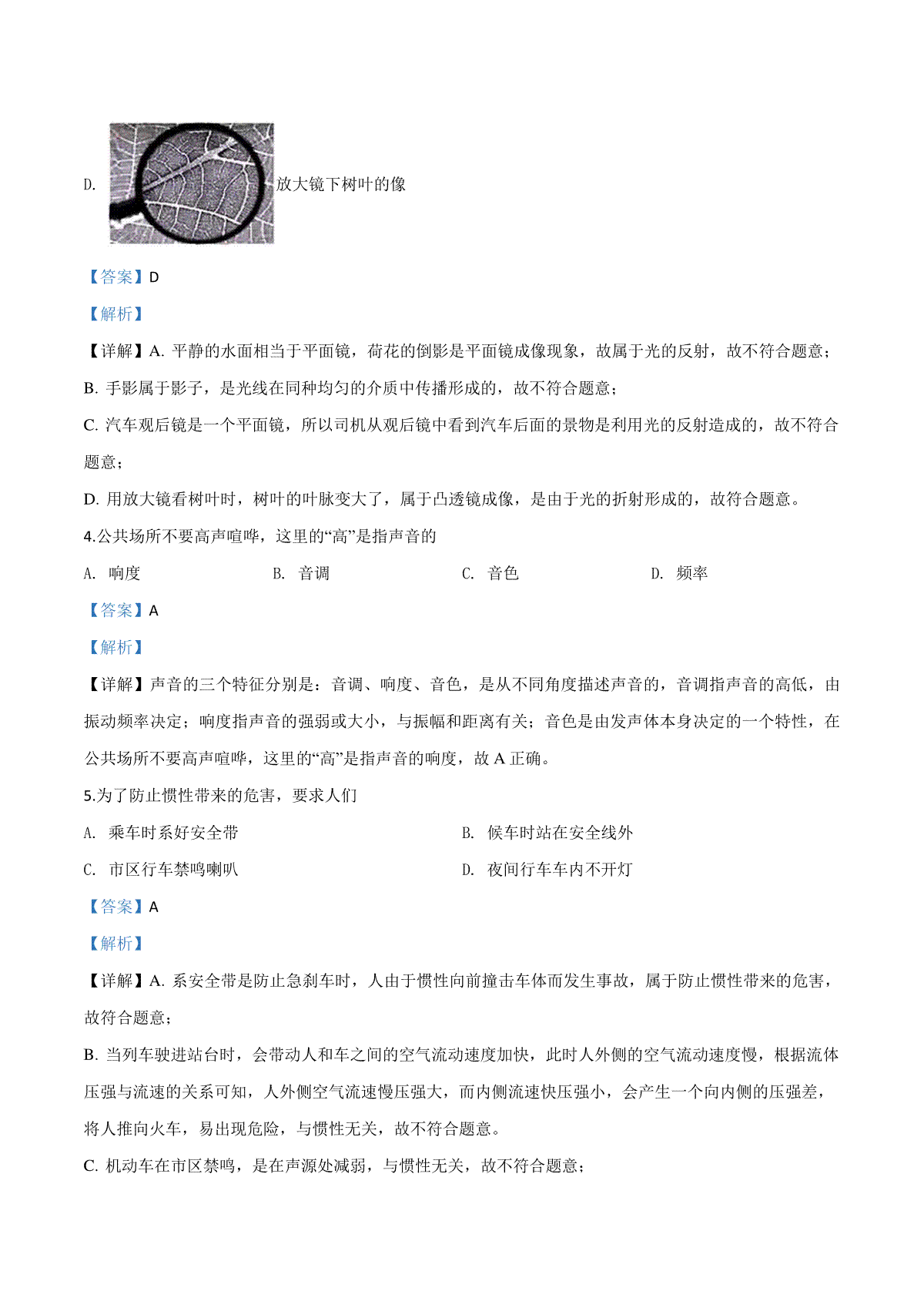 一、精品解析:2019年福建省中考物理试题(解析版)