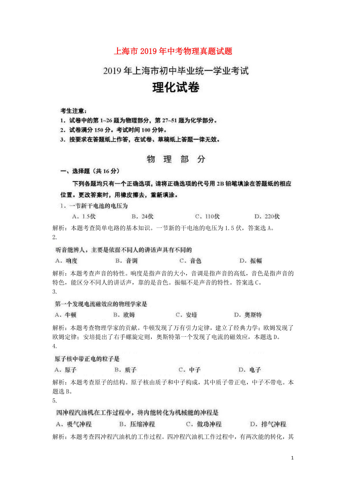 如果你想下载上海市2019年中考物理真题试题(含解析)DOC或PDF版,请点击本文末链接!