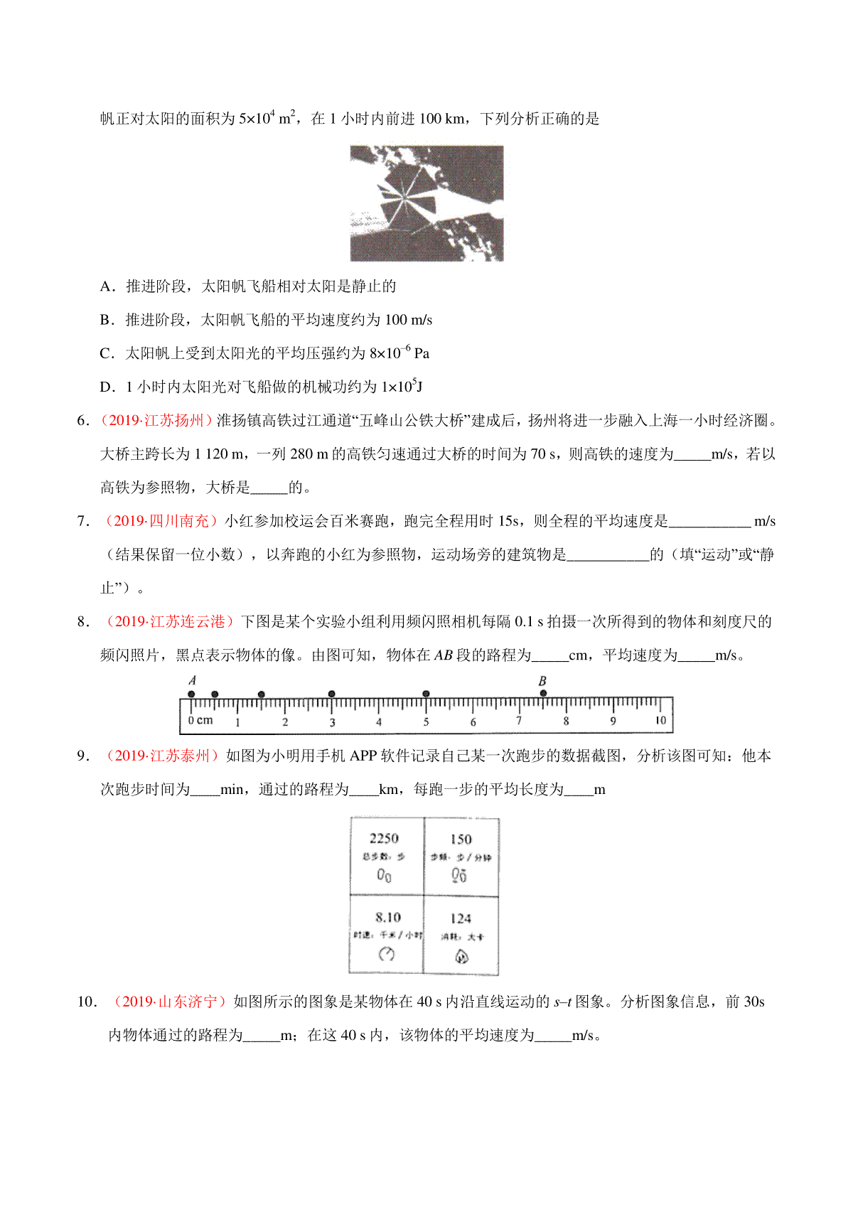 一、专题04 机械运动(第01期)-2019年中考真题物理试题分项汇编(原卷版)