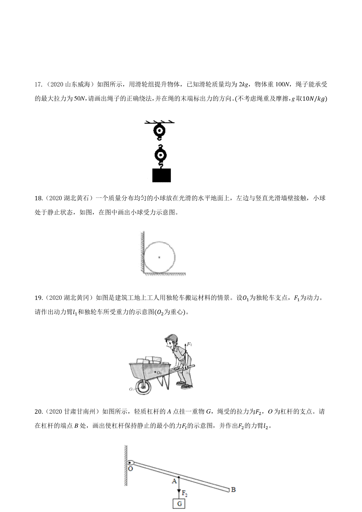 一、2020全国物理中考题分类汇编20—《力学作图》