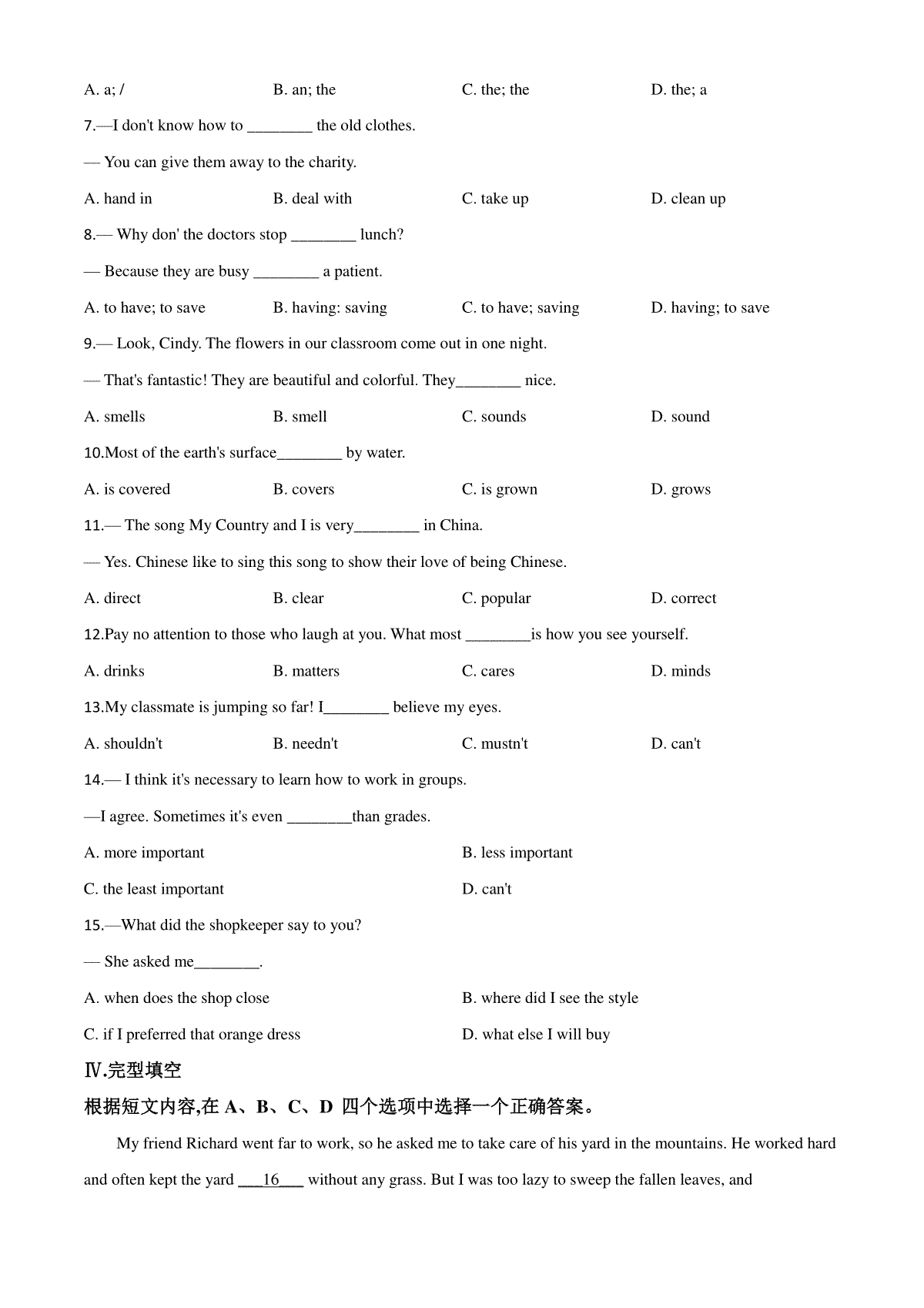 一、精品解析:新疆维吾尔自治区(建设兵团)2020年中考英语试题(含听力)(原卷版)