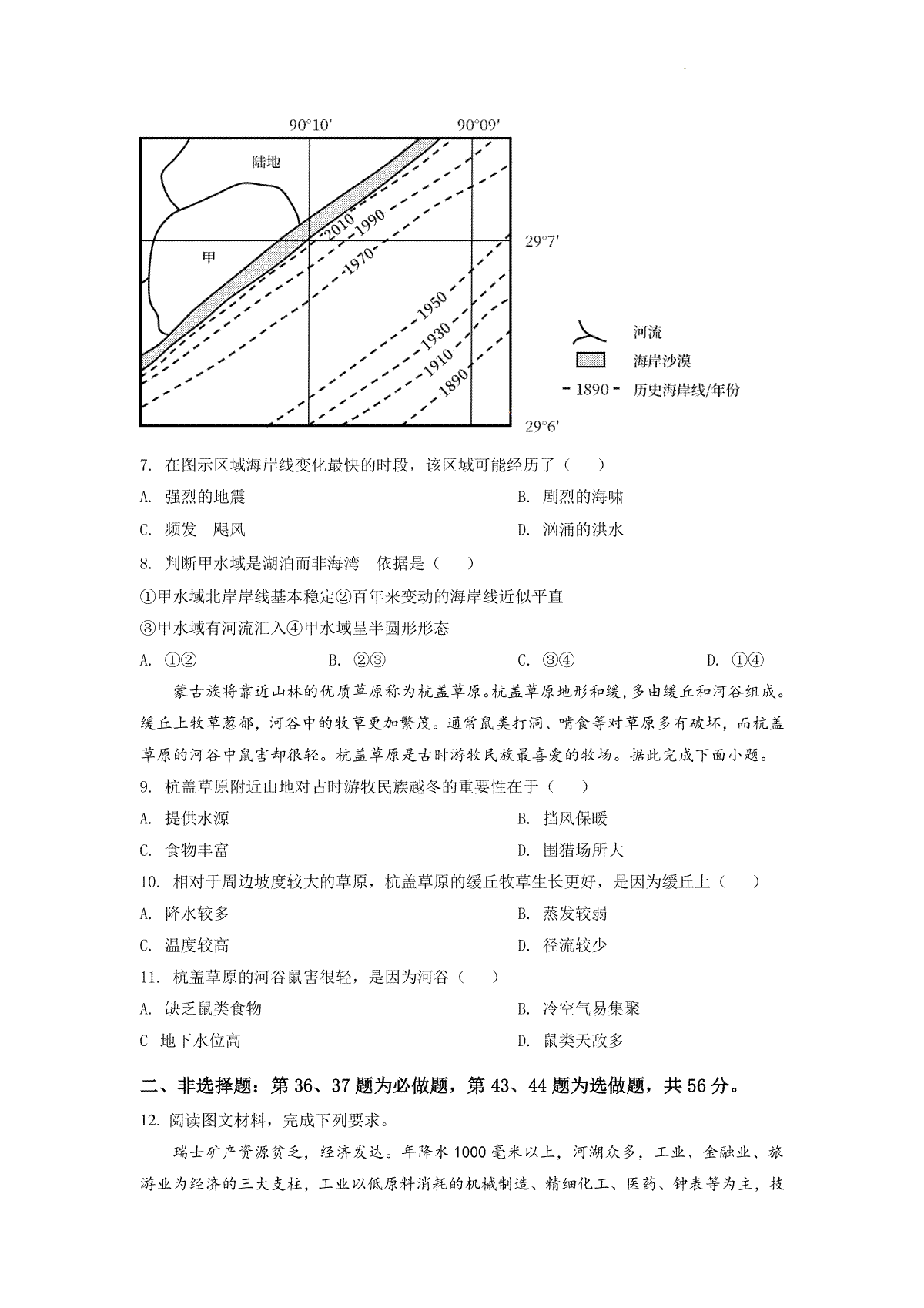 一、精品解析:2022年全国甲卷文综地理高考真题文档版(原卷版)