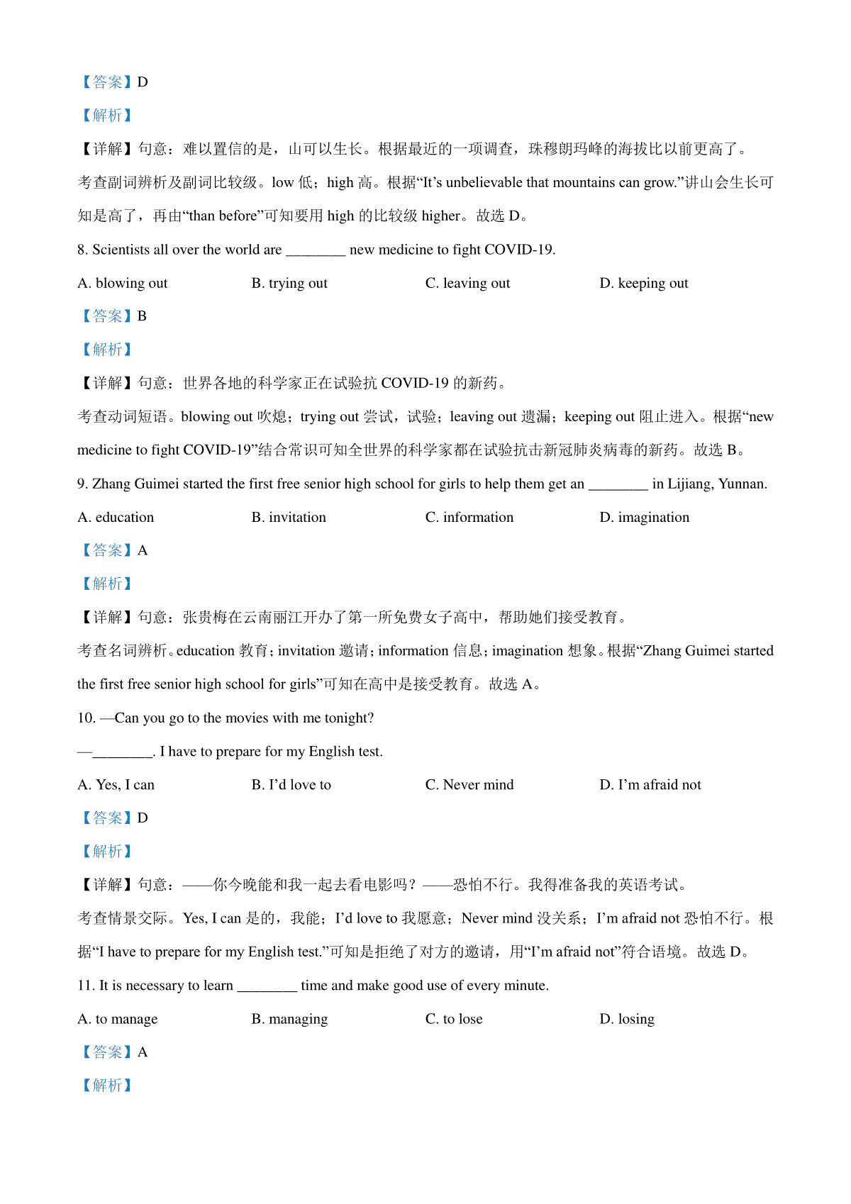 一、精品解析:云南省昆明市2021年中考英语试题(解析版)