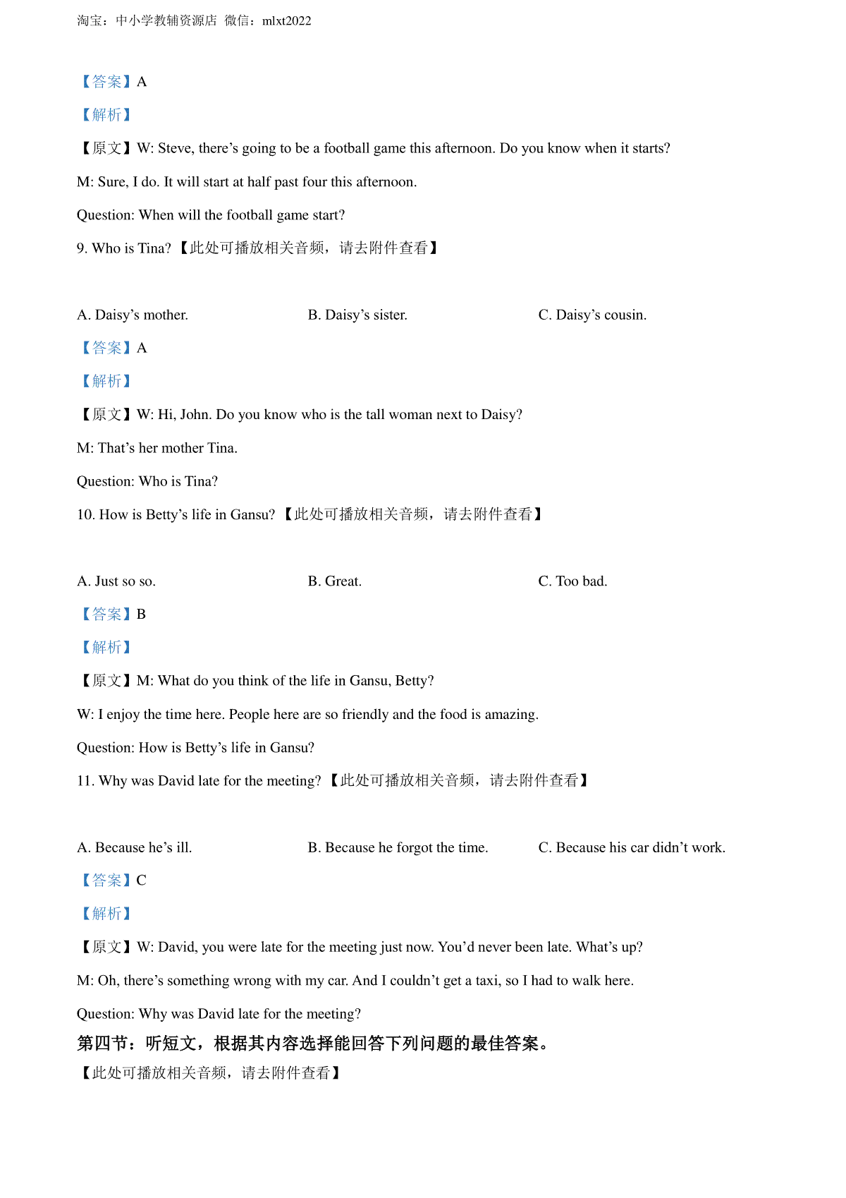 如果你想下载精品解析:2022年甘肃省平凉市中考英语真题(含听力)(解析版)DOC或PDF版,请点击本文末链接!