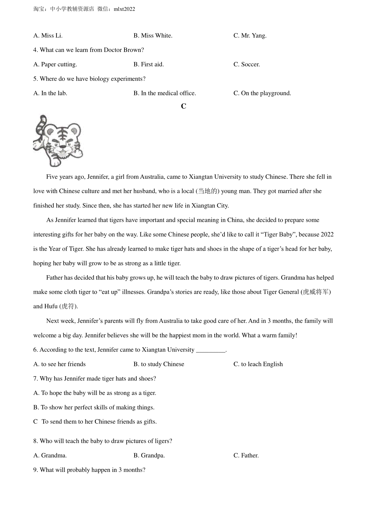 如果你想下载精品解析:2022年湖南省湘潭市中考英语真题(原卷版)DOC或PDF版,请点击本文末链接!