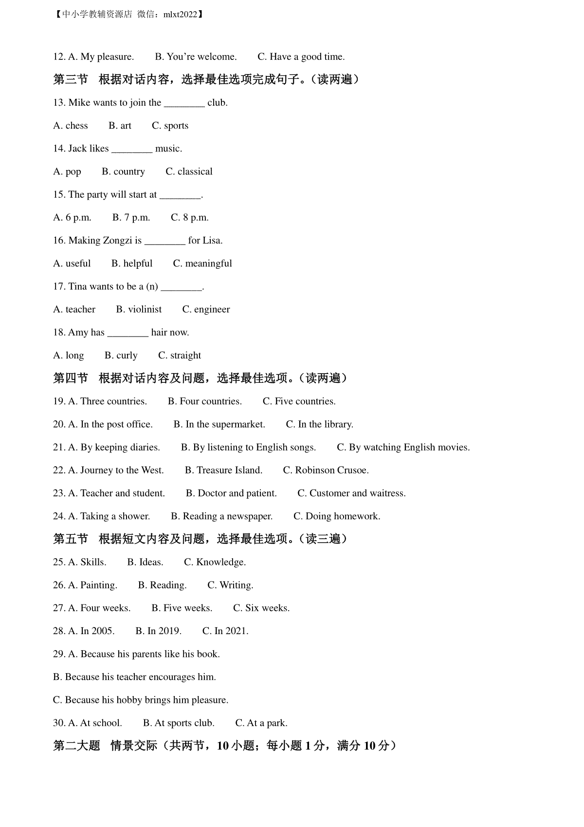 如果你想下载精品解析:2022年贵州省六盘水市中考英语真题(原卷版)DOC或PDF版,请点击本文末链接!