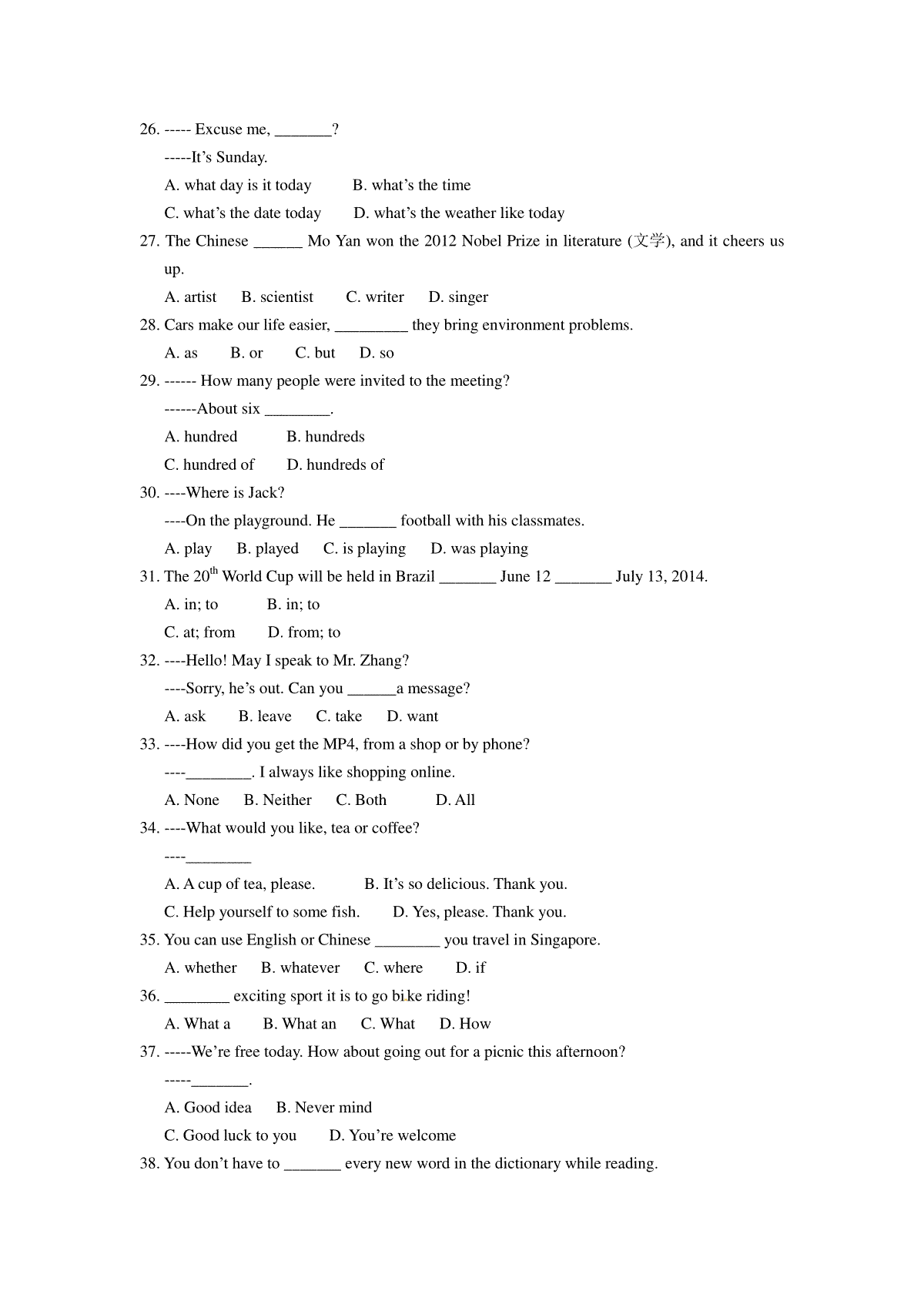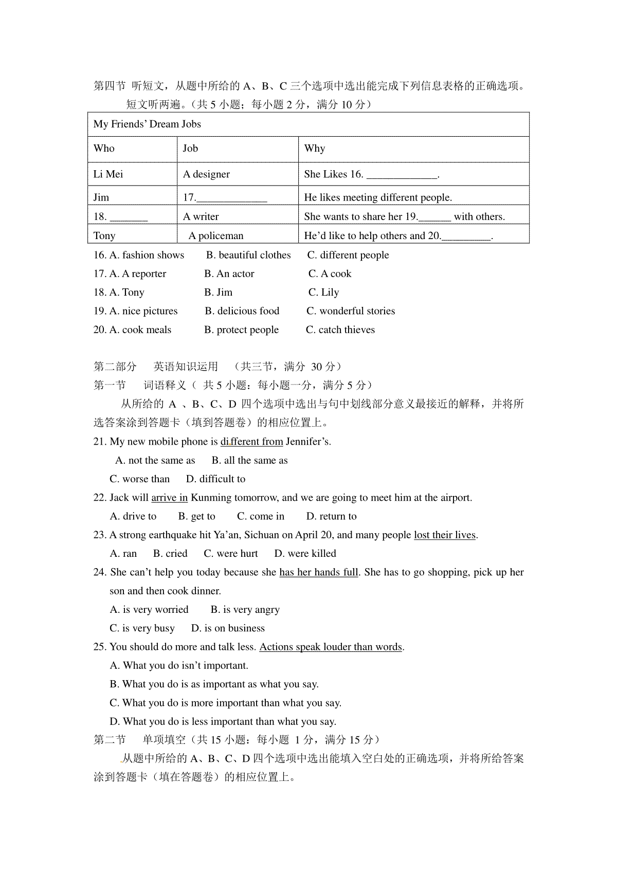 一、2013年云南昆明英语中考整套试题及答案