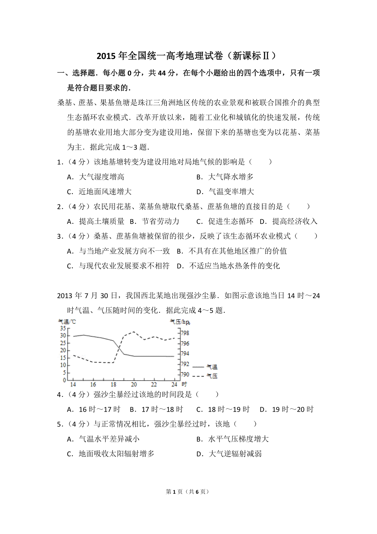 一、2015年全国统一高考地理试卷(新课标ⅱ)(原卷版)