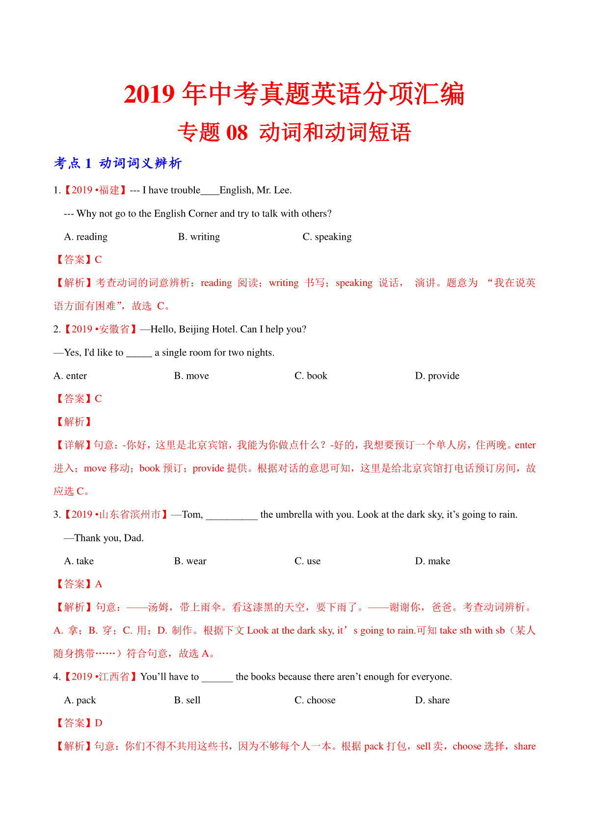 如果你想下载专题08 动词和动词短语(第01期)(解析版)DOC或PDF版,请点击本文末链接!