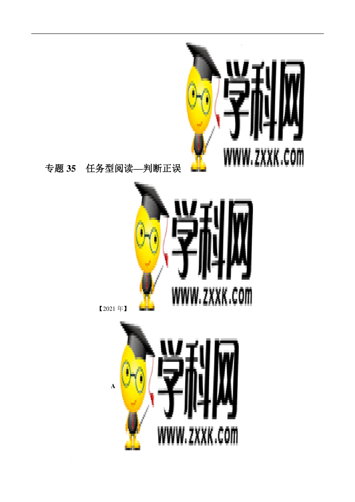 专题35 任务型阅读—判断正误---三年(2019-2021)中考真题英语分项汇编(全国通用)于近期开考,本次考试对考生对知识的掌握参考价值大,为了方便大家复习掌握错题!小编在下文为大家准备了专题35 任务型阅读—判断正误---三年(2019-2021)中考真题英语分项汇编(全国通用)试卷及答案解析详情,仅供考生参考。