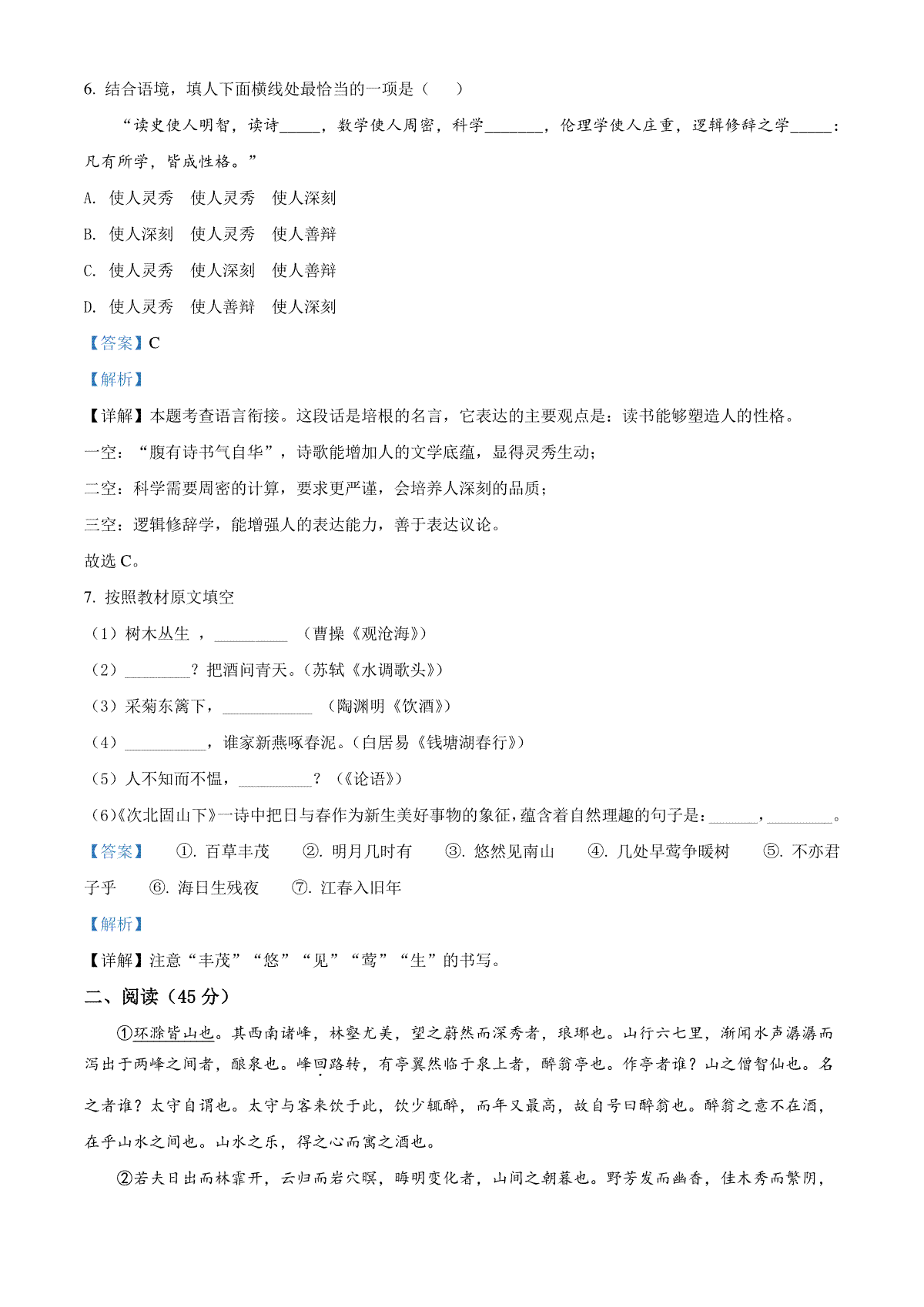 一、精品解析:2022年黑龙江省哈尔滨市中考语文试题(解析版)