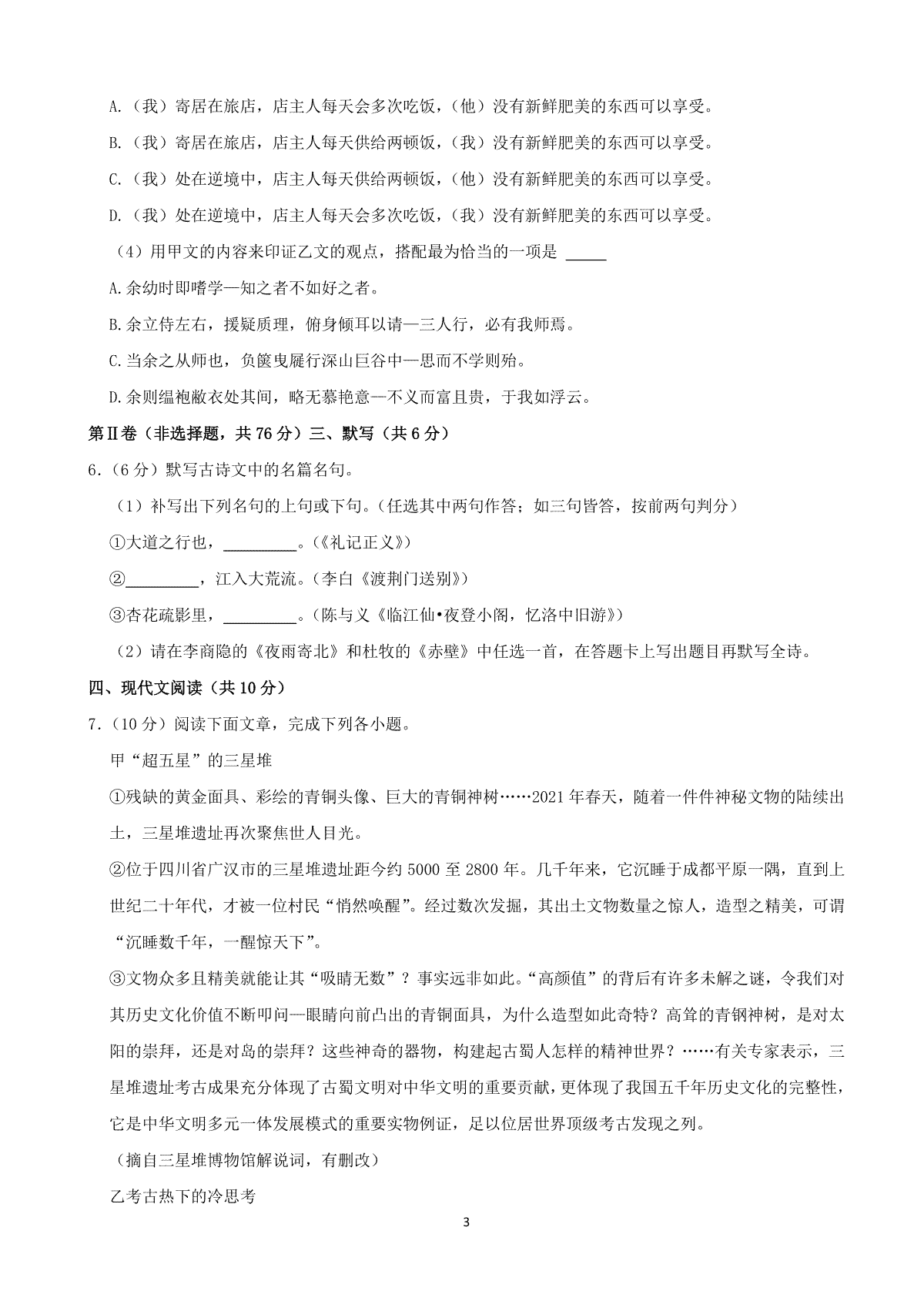 下载2021年成都市中考语文试题及答案PDF格式或doc