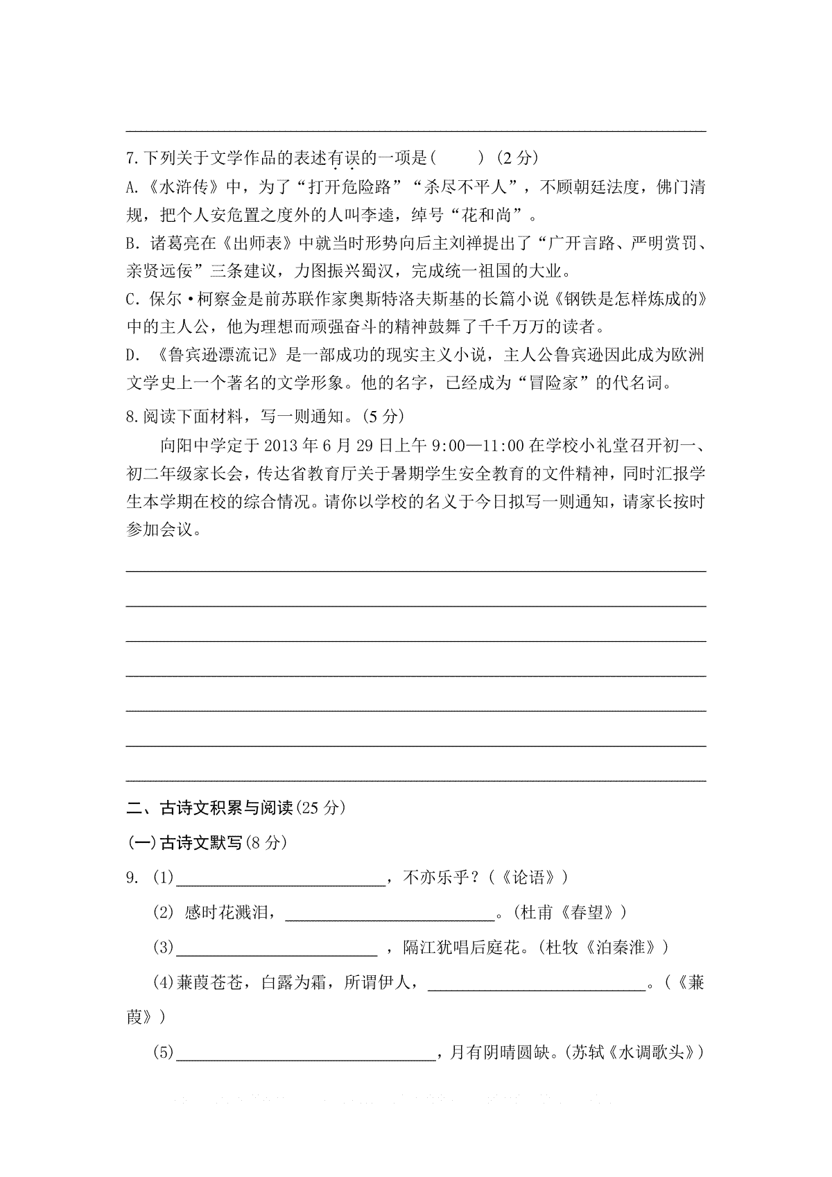 下载2013年海南省中考语文试题及答案PDF格式或doc