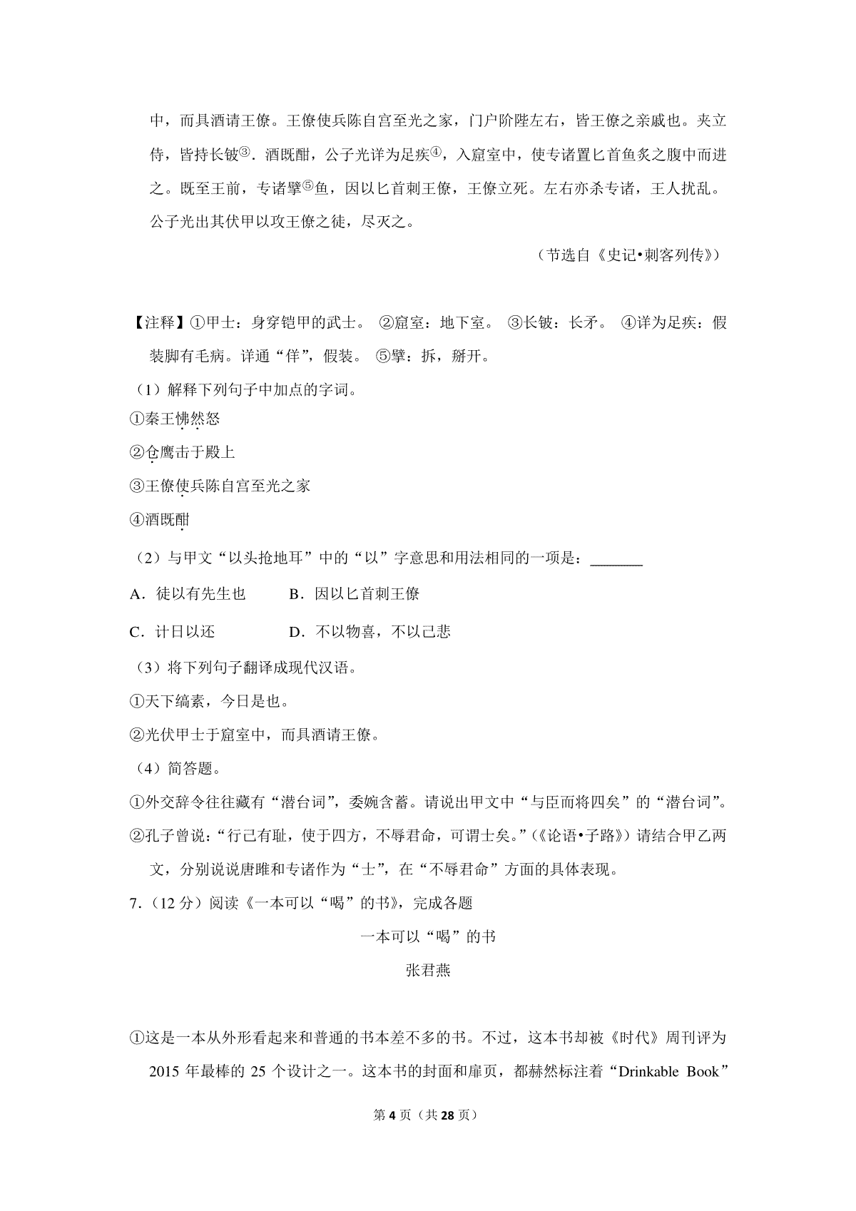 下载2016年福建省厦门市中考语文试卷PDF格式或doc