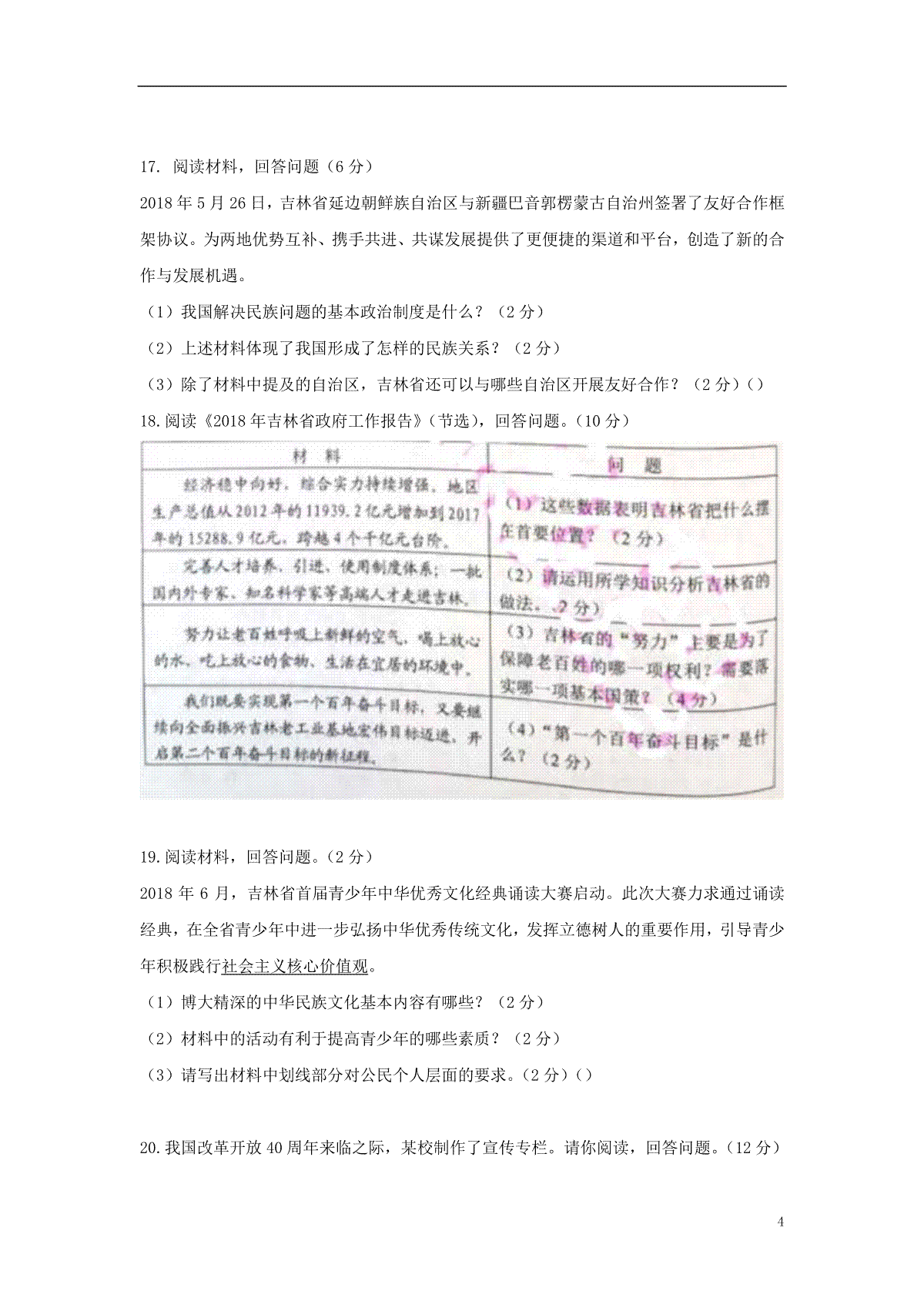 吉林省长春市2018年中考思想品德真题试题(含答案)于近期开考,本次考试对考生对知识的掌握参考价值大,为了方便大家复习掌握错题!小编在下文为大家准备了吉林省长春市2018年中考思想品德真题试题(含答案)试卷及答案解析详情,仅供考生参考。