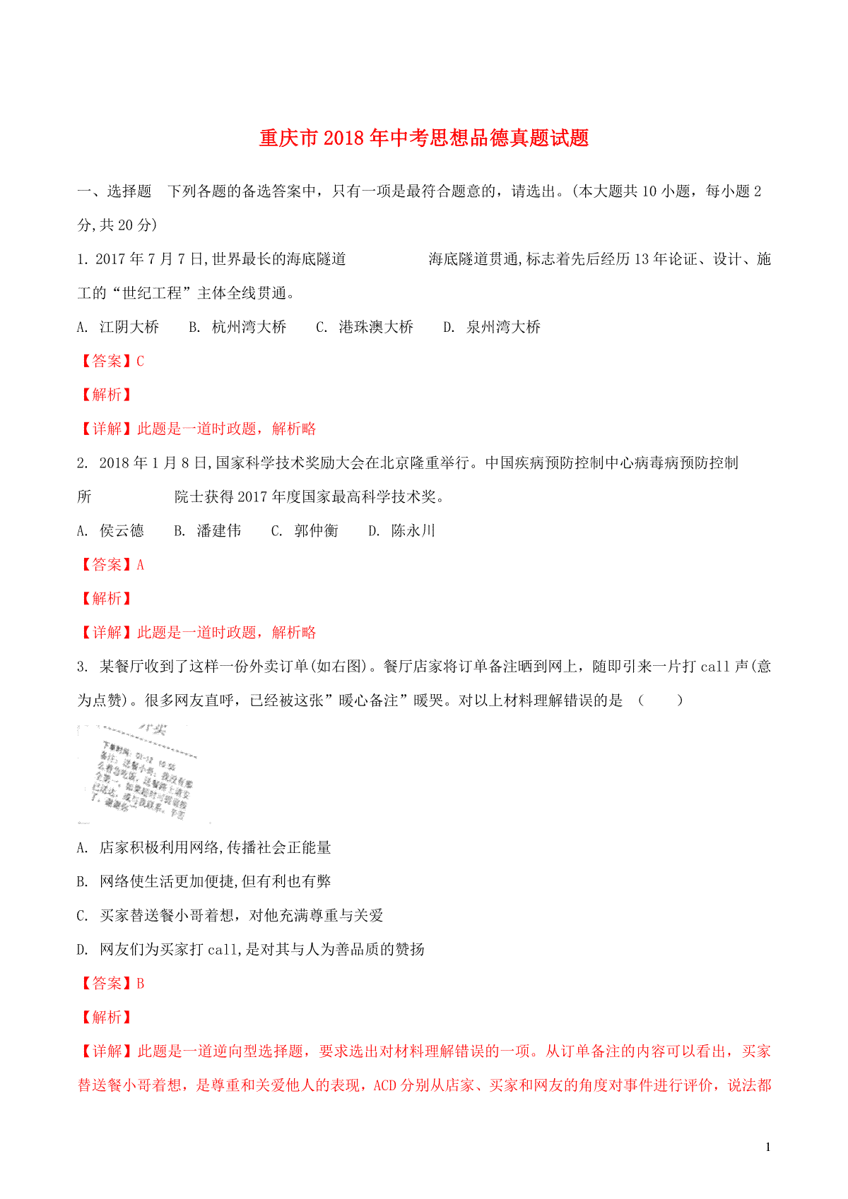 如果你想下载重庆市2018年中考思想品德真题试题(B卷,含解析)DOC或PDF版,请点击本文末链接!