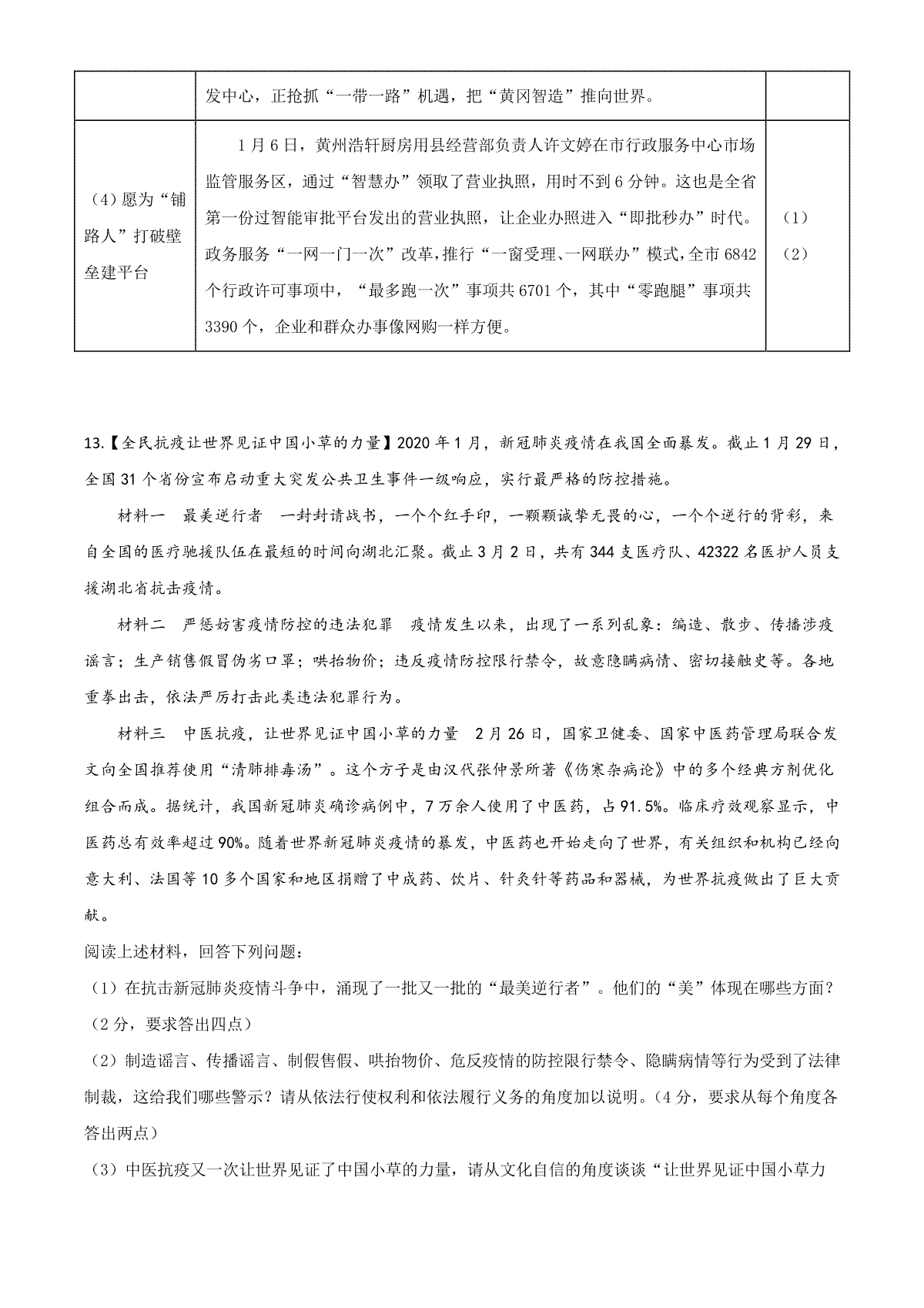 一、精品解析:湖北省黄冈市2020年中考道德与法治试题(原卷版)