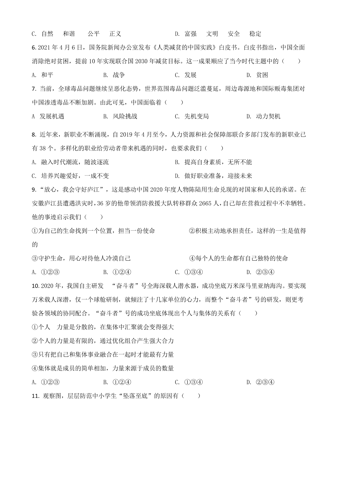一、贵州省安顺市2021年中考道德与法治真题(原卷版)