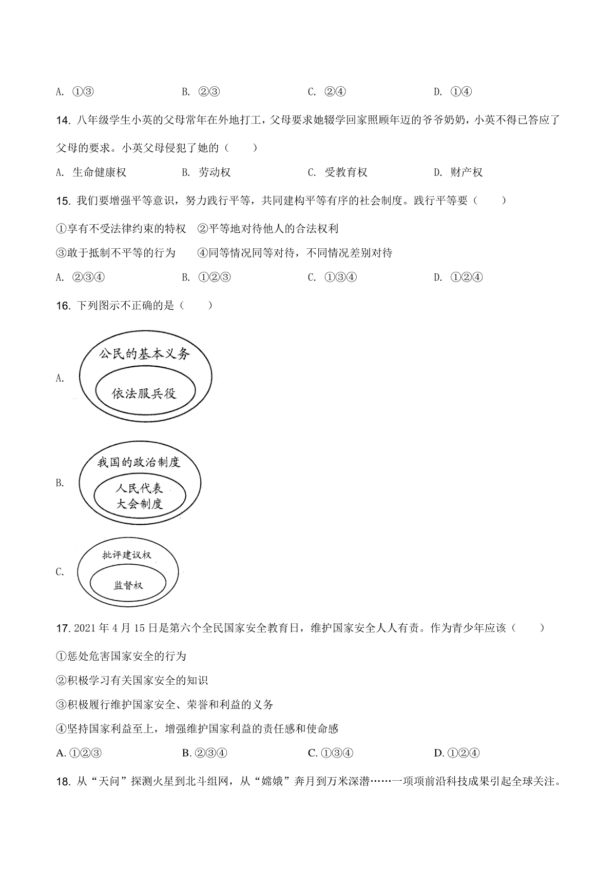 一、精品解析:2021年云南省中考道德与法治真题(原卷版)