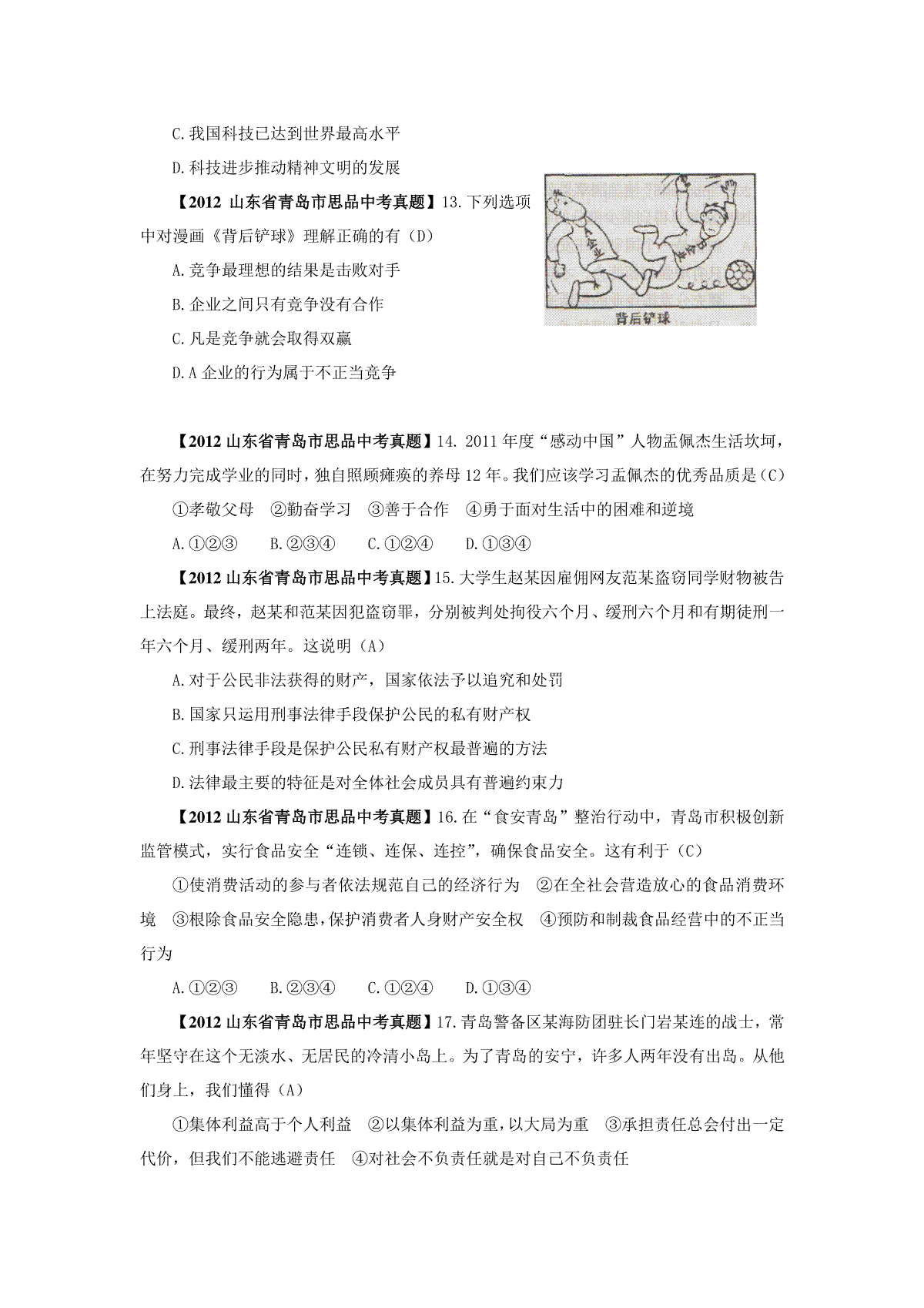 如果你想下载山东省青岛市2012年中考思想品德试卷DOC或PDF版,请点击本文末链接!