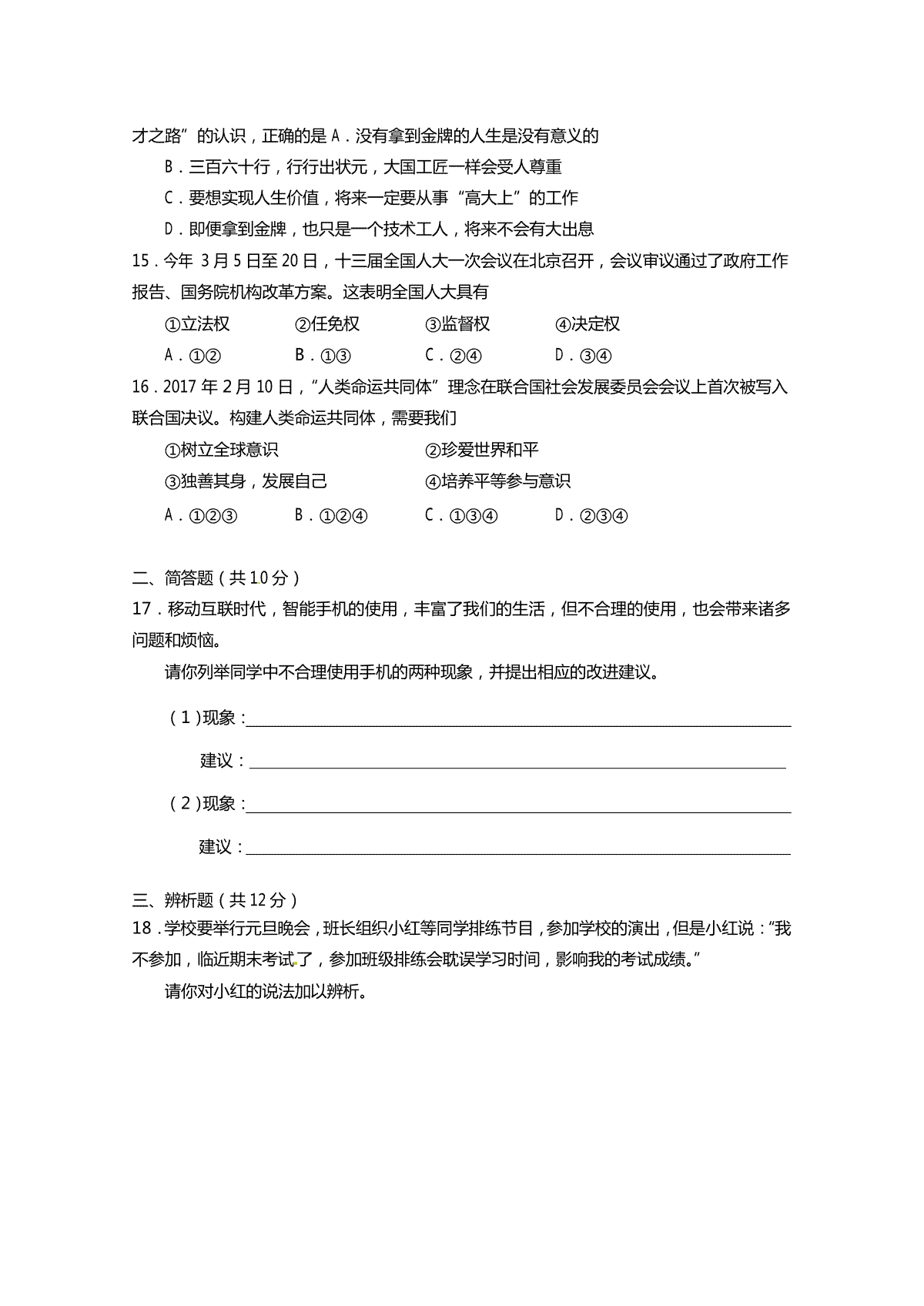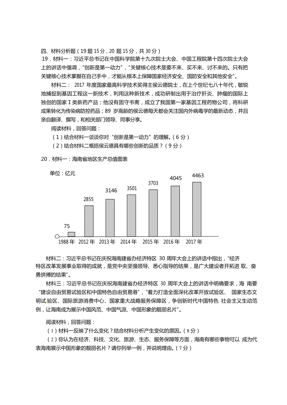 下载2018年海南省中考政治试题及答案PDF格式或doc