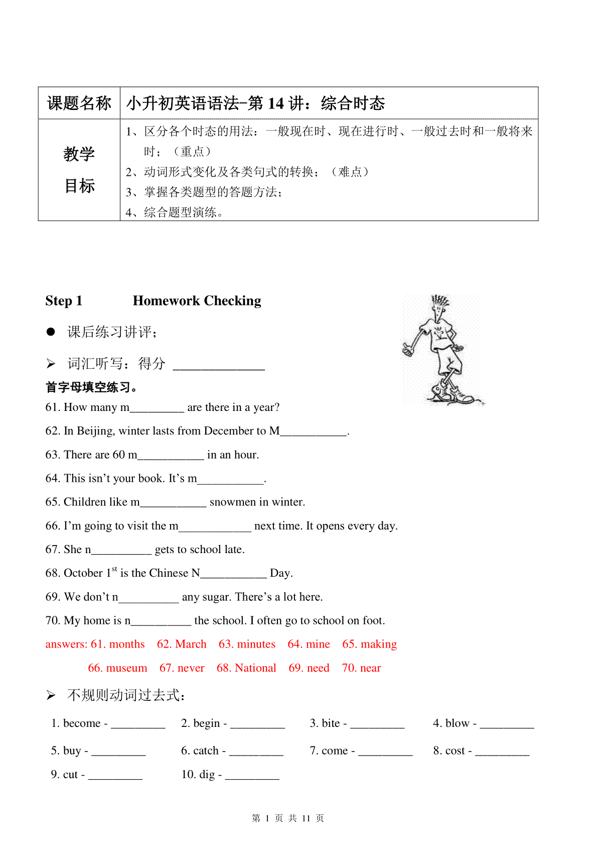 一、小升初英语语法讲义综合时态(含练习+答案)(11页)