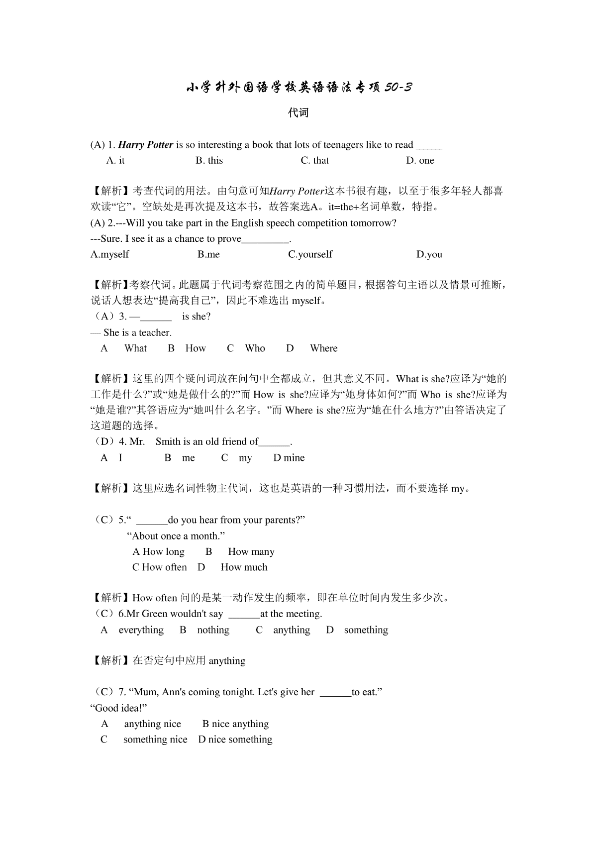 下载小学升外国语学校英语语法专项3-代词PDF格式或doc