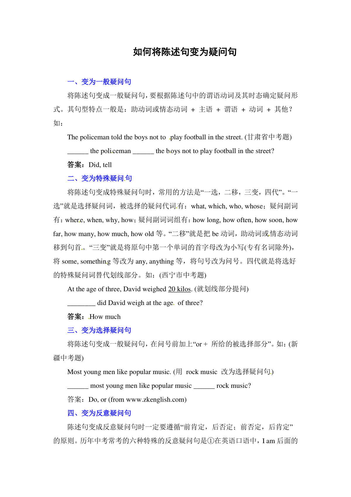 如果你想下载(人教版全册)九年级中考英语专题复习:如何将陈述句变为疑问句DOC或PDF版,请点击本文末链接!