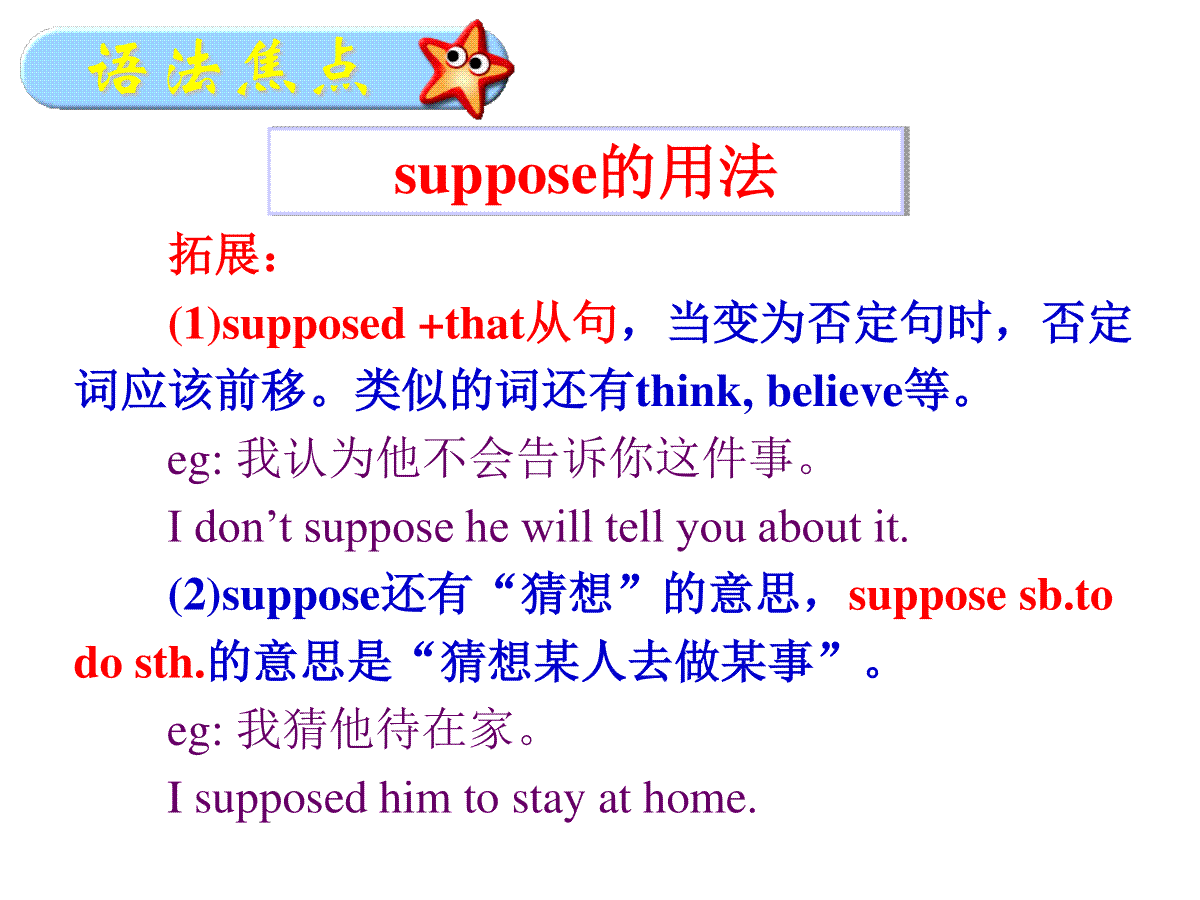【语法焦点与同步作文指导】新目标九年级英语 Unit 10 Youre supposed to sh于近期开考,本次考试对考生对知识的掌握参考价值大,为了方便大家复习掌握错题!小编在下文为大家准备了【语法焦点与同步作文指导】新目标九年级英语 Unit 10 Youre supposed to sh试卷及答案解析详情,仅供考生参考。