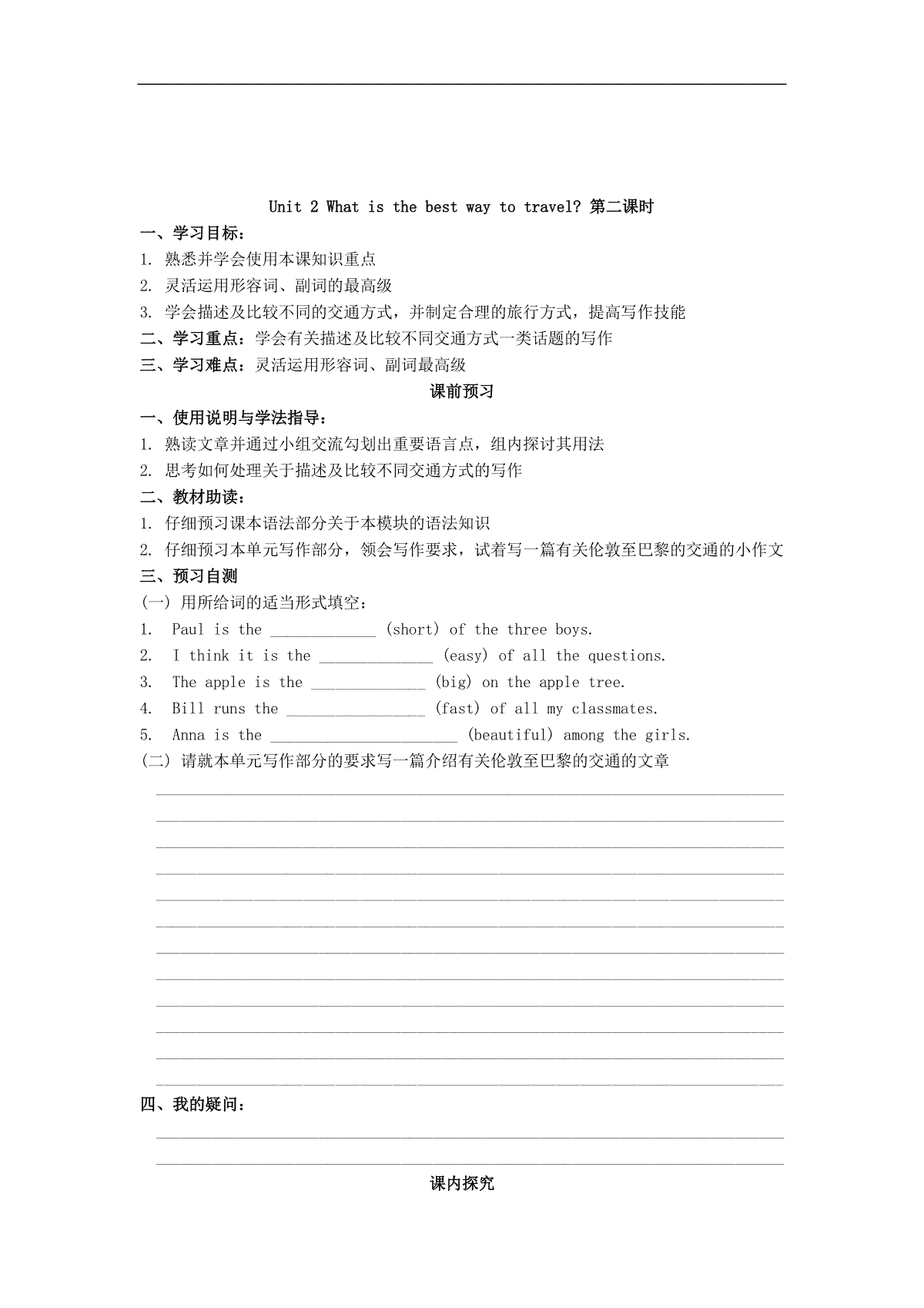 下载外研版八年级上册 Module 4 Unit 2 What is the best way to tPDF格式或doc