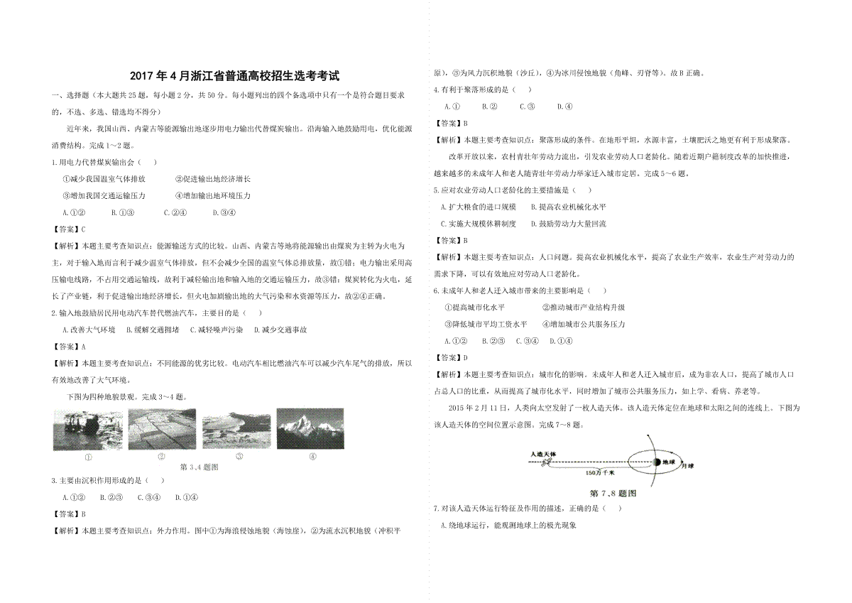 如果你想下载2017年浙江省高考地理【4月】(含解析版)DOC或PDF版,请点击本文末链接!