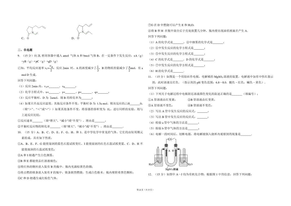 一、2010年全国统一高考化学试卷(全国卷ⅱ)(原卷版)