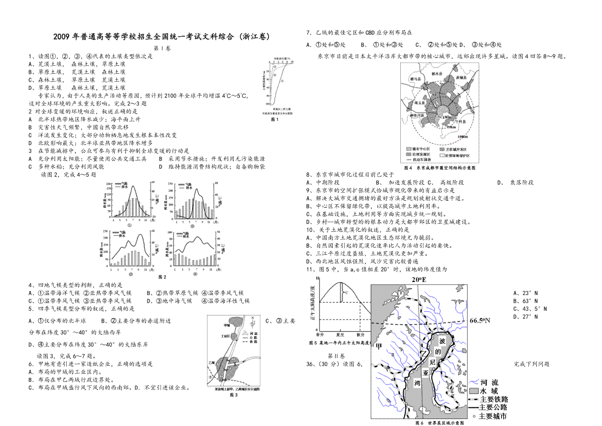 一、2009年浙江省高考地理(原卷版)