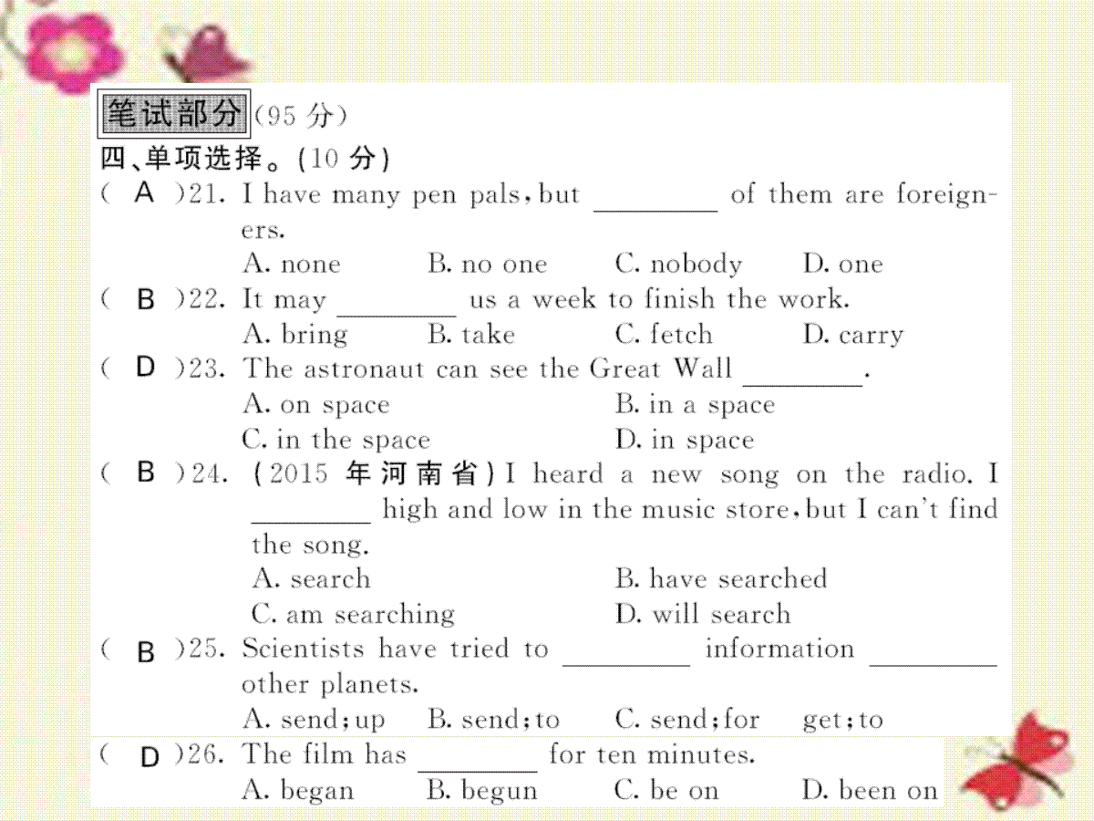 八年级英语上册 Module 3-4综合测试卷课件 (新版)外研版(书利华教育网)于近期开考,本次考试对考生对知识的掌握参考价值大,为了方便大家复习掌握错题!小编在下文为大家准备了八年级英语上册 Module 3-4综合测试卷课件 (新版)外研版(书利华教育网)试卷及答案解析详情,仅供考生参考。