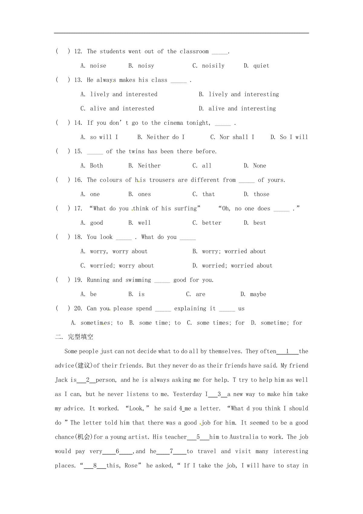 一、2013年九年级英语上册 Module 10 Fitness模块测试题1 外研版