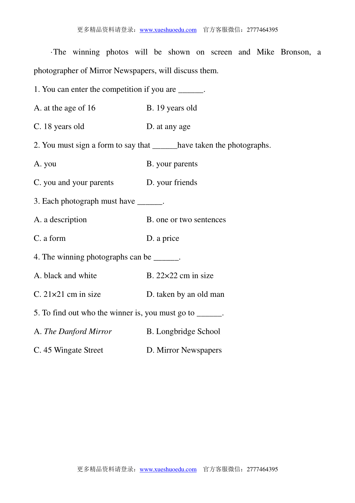 如果你想下载Module 11 Photos课时作业(2)DOC或PDF版,请点击本文末链接!