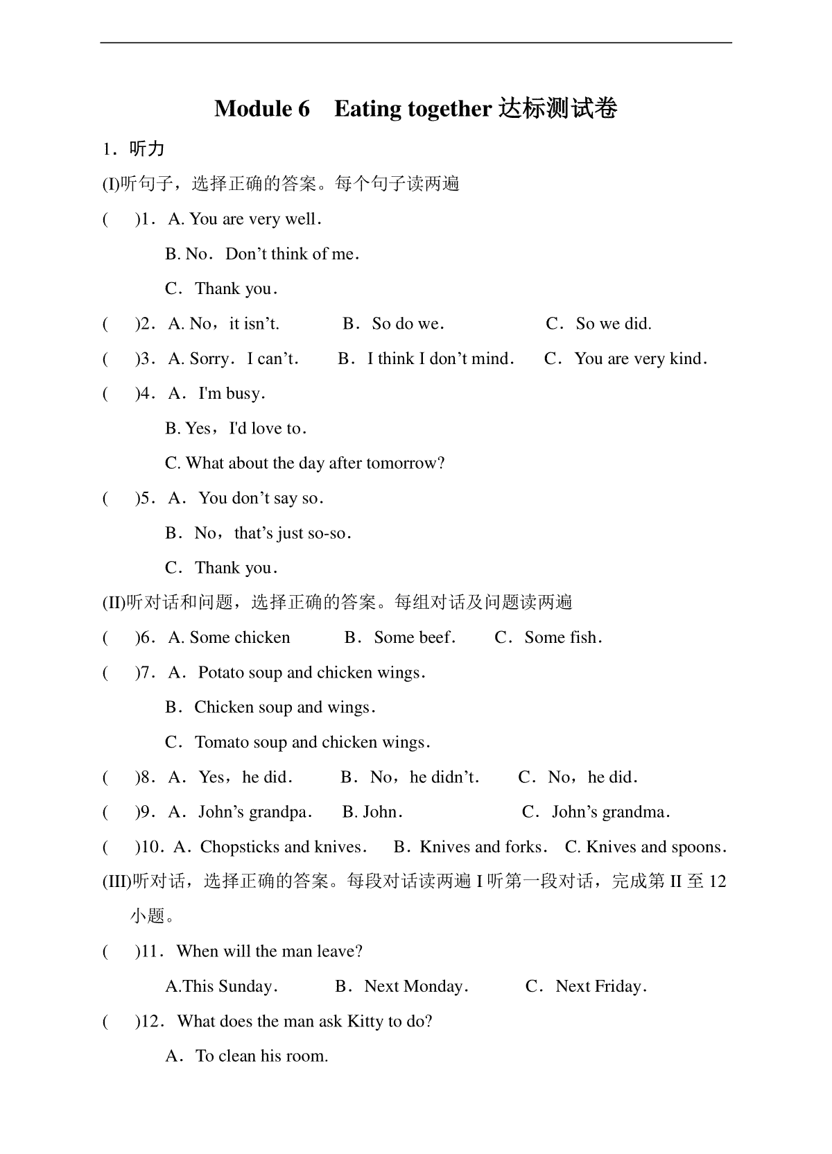 下载外研(新标准)版英语九年级下Module 6 Eating together达标测试卷(含答案,无音PDF格式或doc