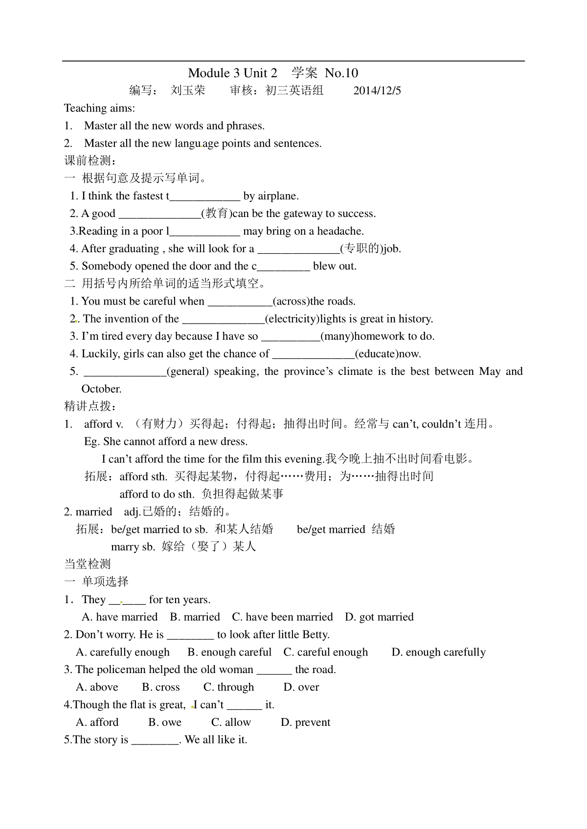 一、外研版九年级英语下册 Module3 Unit2 学案(无答案)