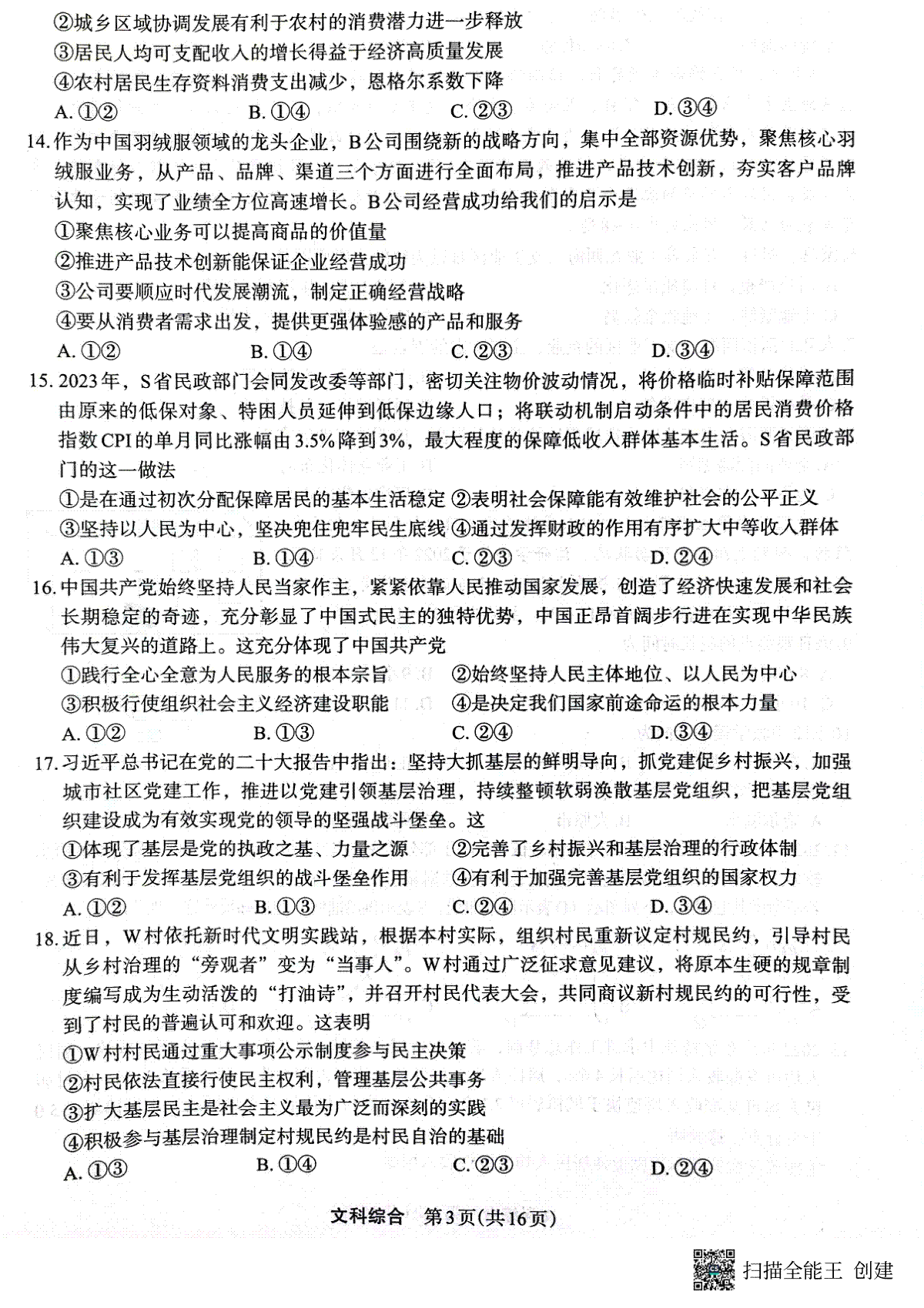 如果你想下载2023届高三下学期4月质量检测文科综合试卷DOC或PDF版,请点击本文末链接!