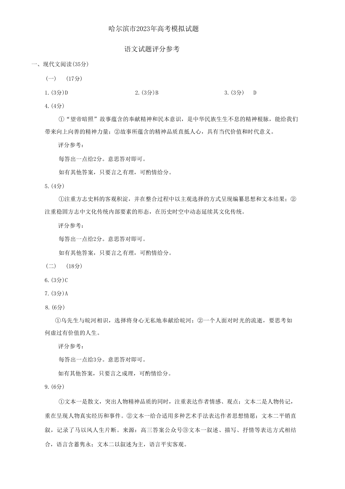 一、2023东北三省四市二模语文答案